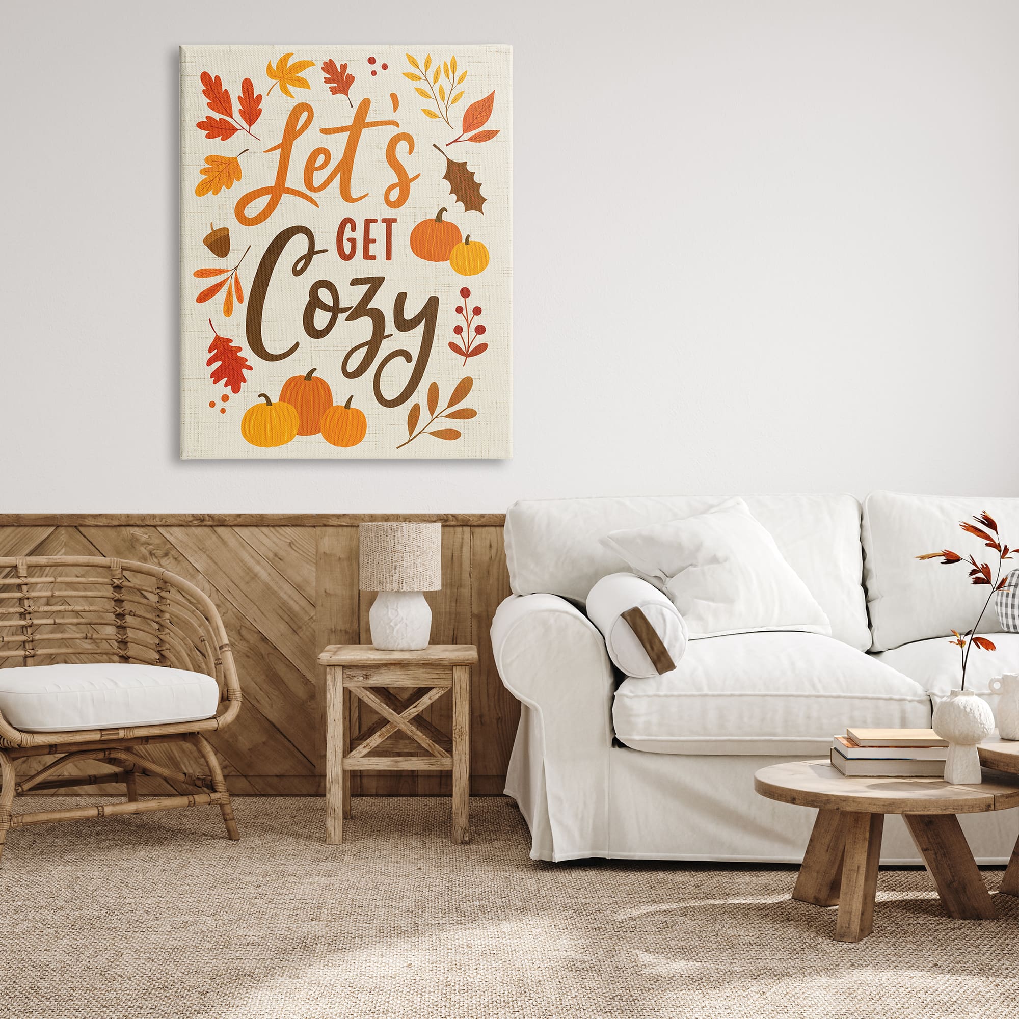 Stupell Industries Lets Get Cozy Autumnal Leaf Sprigs Canvas Wall Art