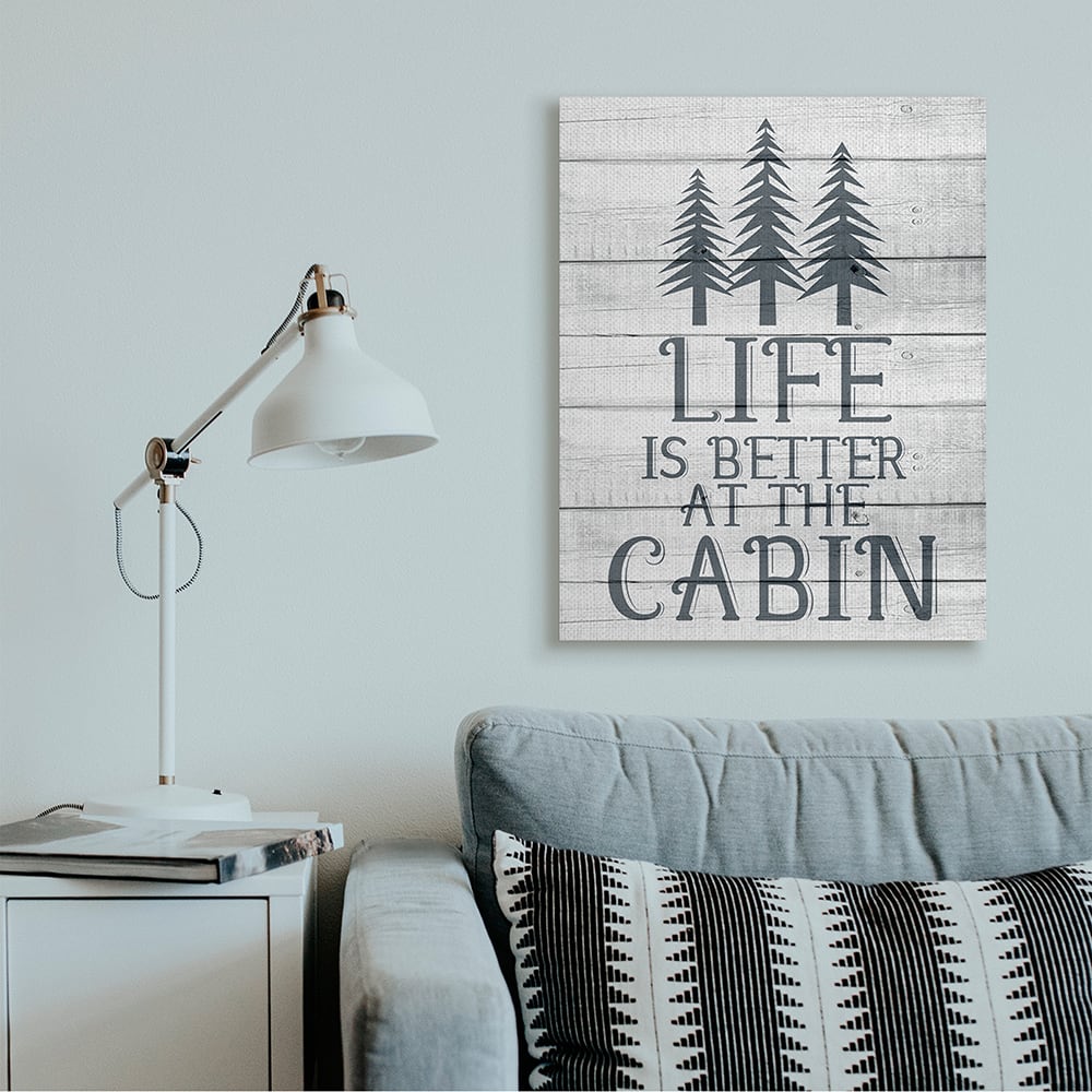 Stupell Industries Life's Better At Cabin Phrase Rural Forest Home Canvas Wall Art