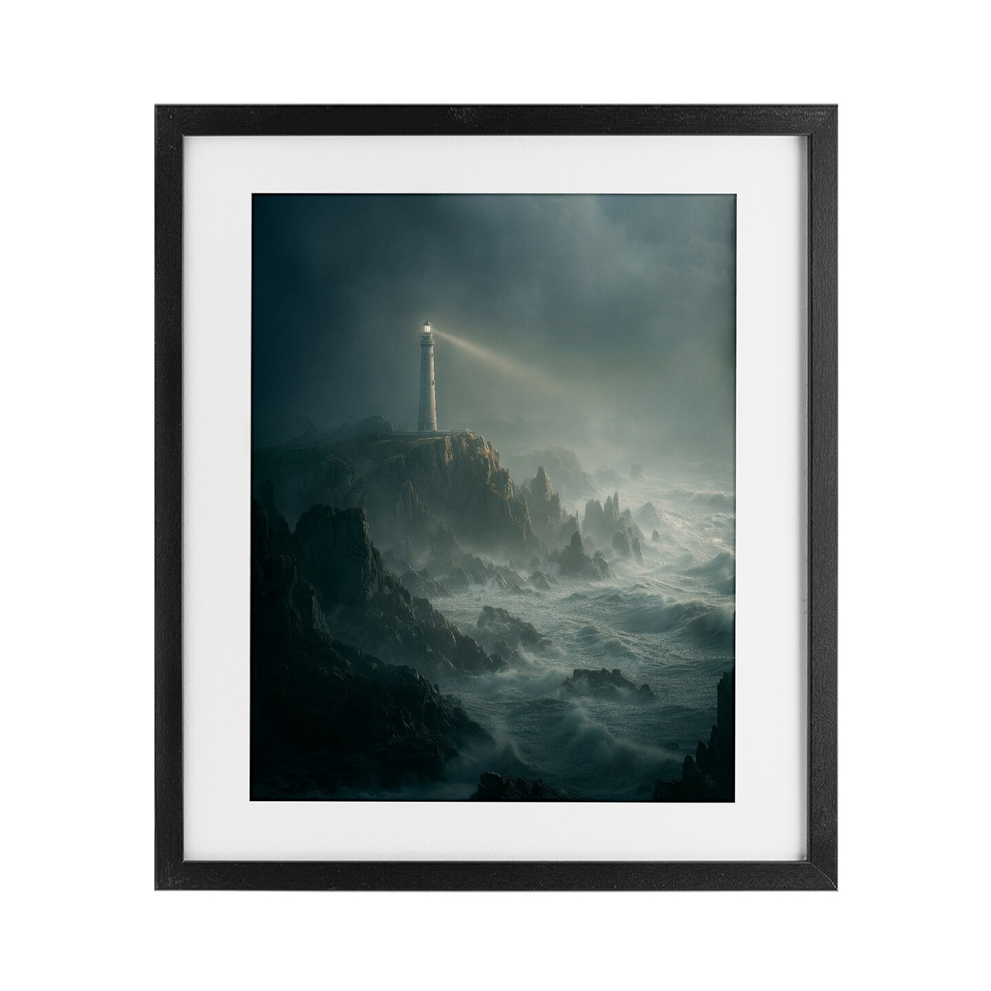 Stupell Industries Lighthouse and Stormy Cliff Framed Print Under Glass, design by Ziwei Li