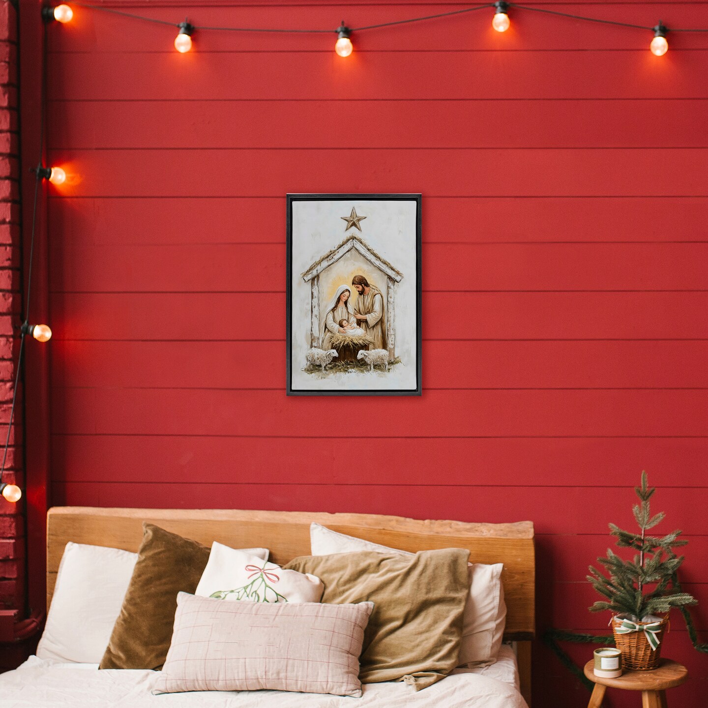 Stupell Industries Little Lambs & Nativity Floating Frame, design by Petal Prints Design
