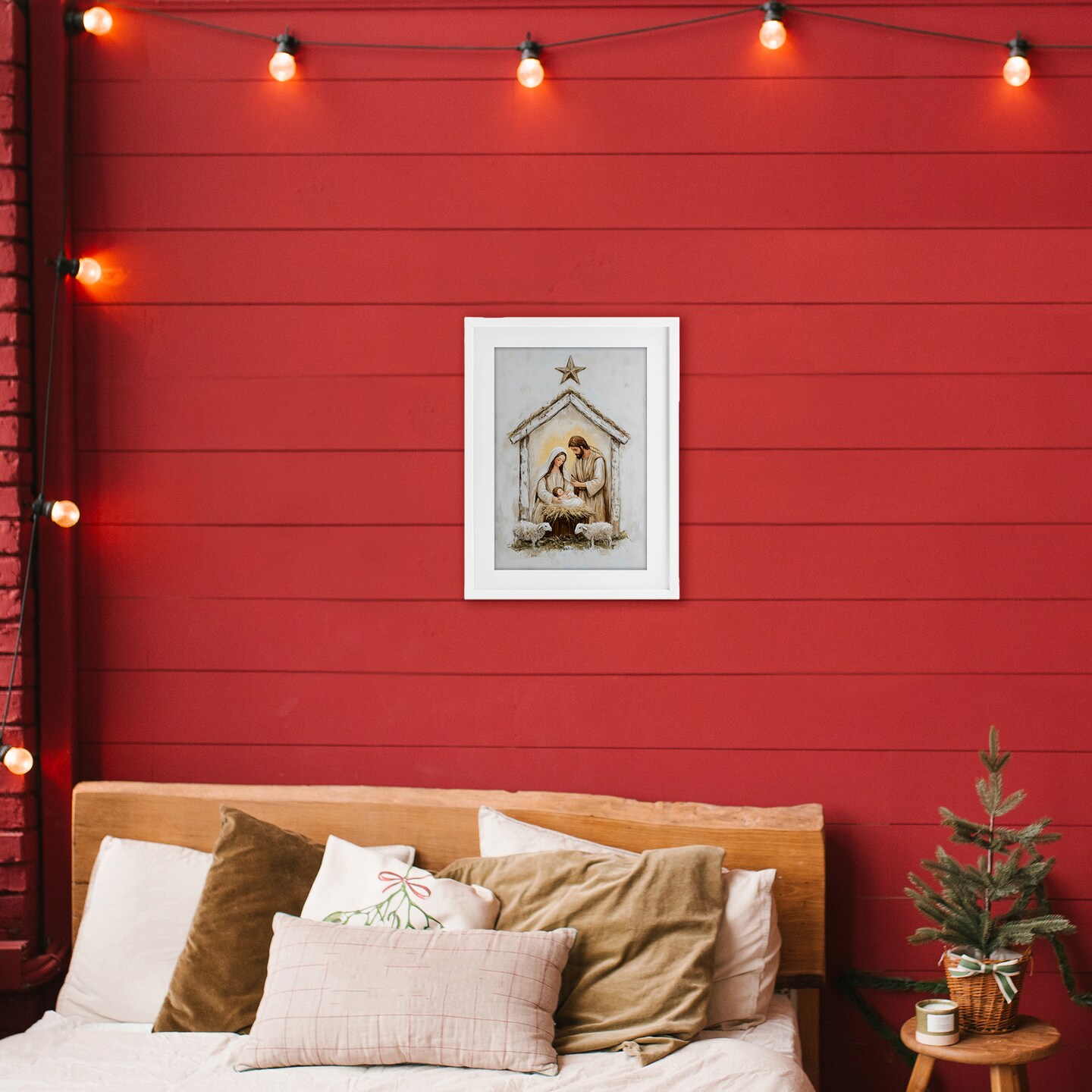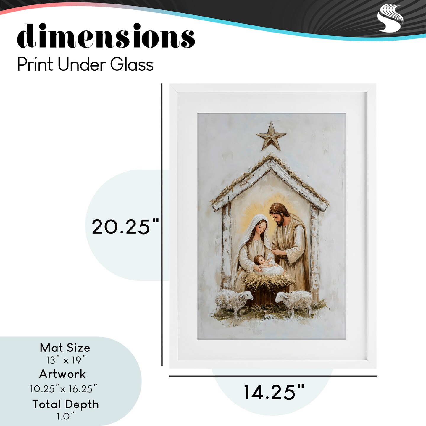 Stupell Industries Little Lambs & Nativity Framed Print Under Glass, design by Petal Prints Design