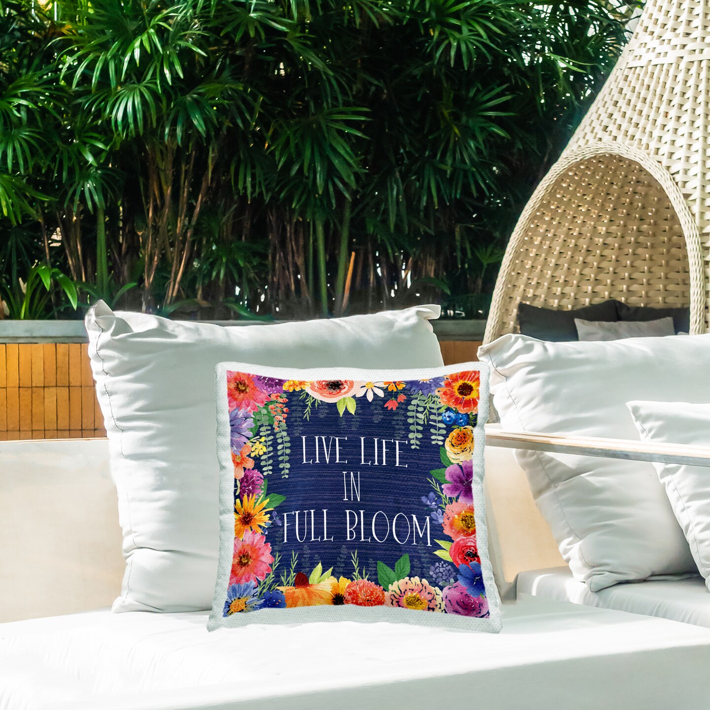 Stupell Industries Live Life in Full Bloom Outdoor Printed Pillow design by Nicole DeCamp, 18 x 7 x 18