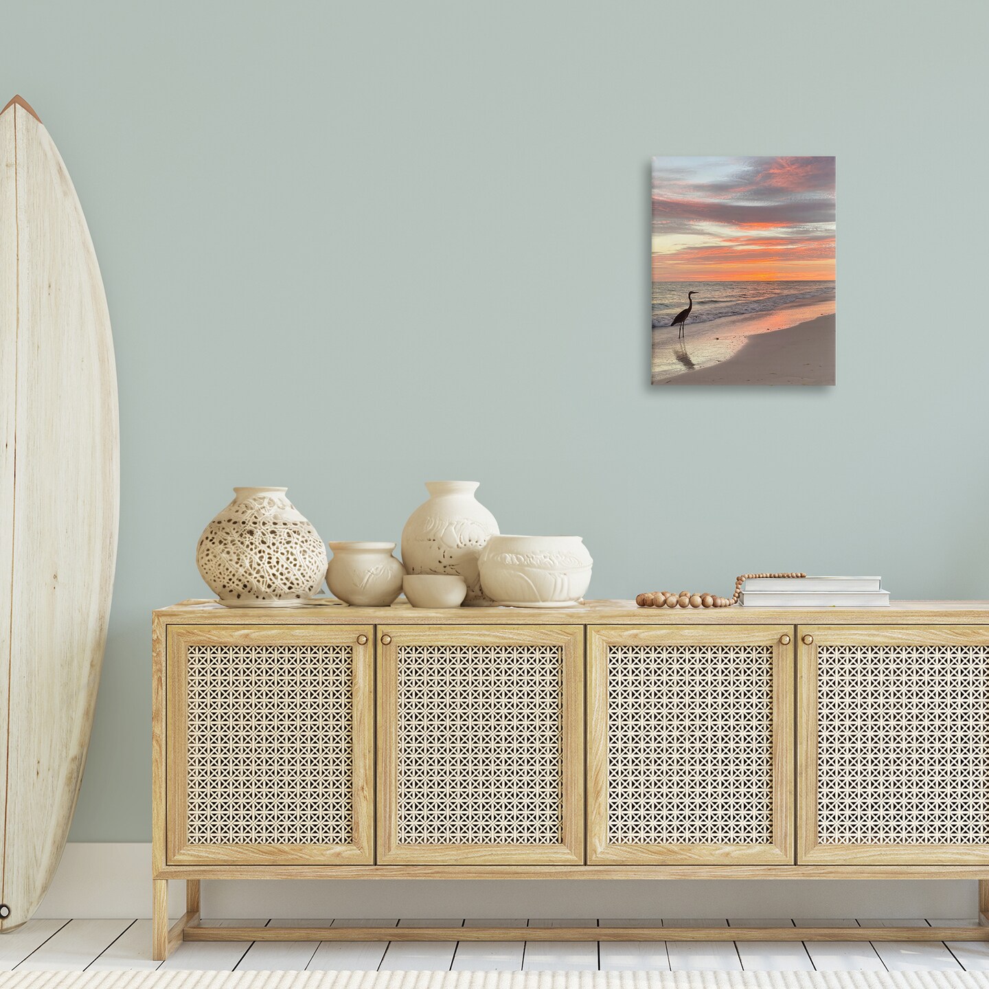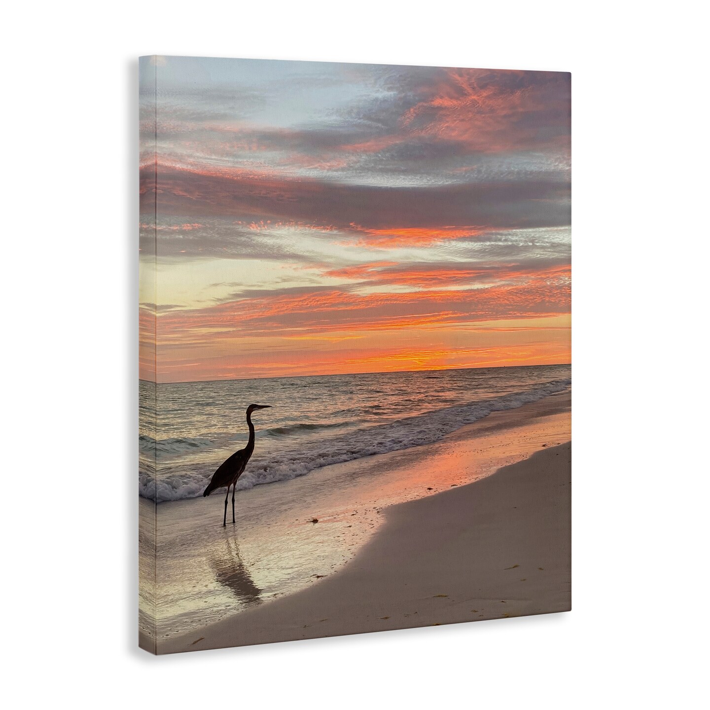 Stupell Industries Lone Egret on Beach Canvas Wall Art Design by Mary Lou Johnson