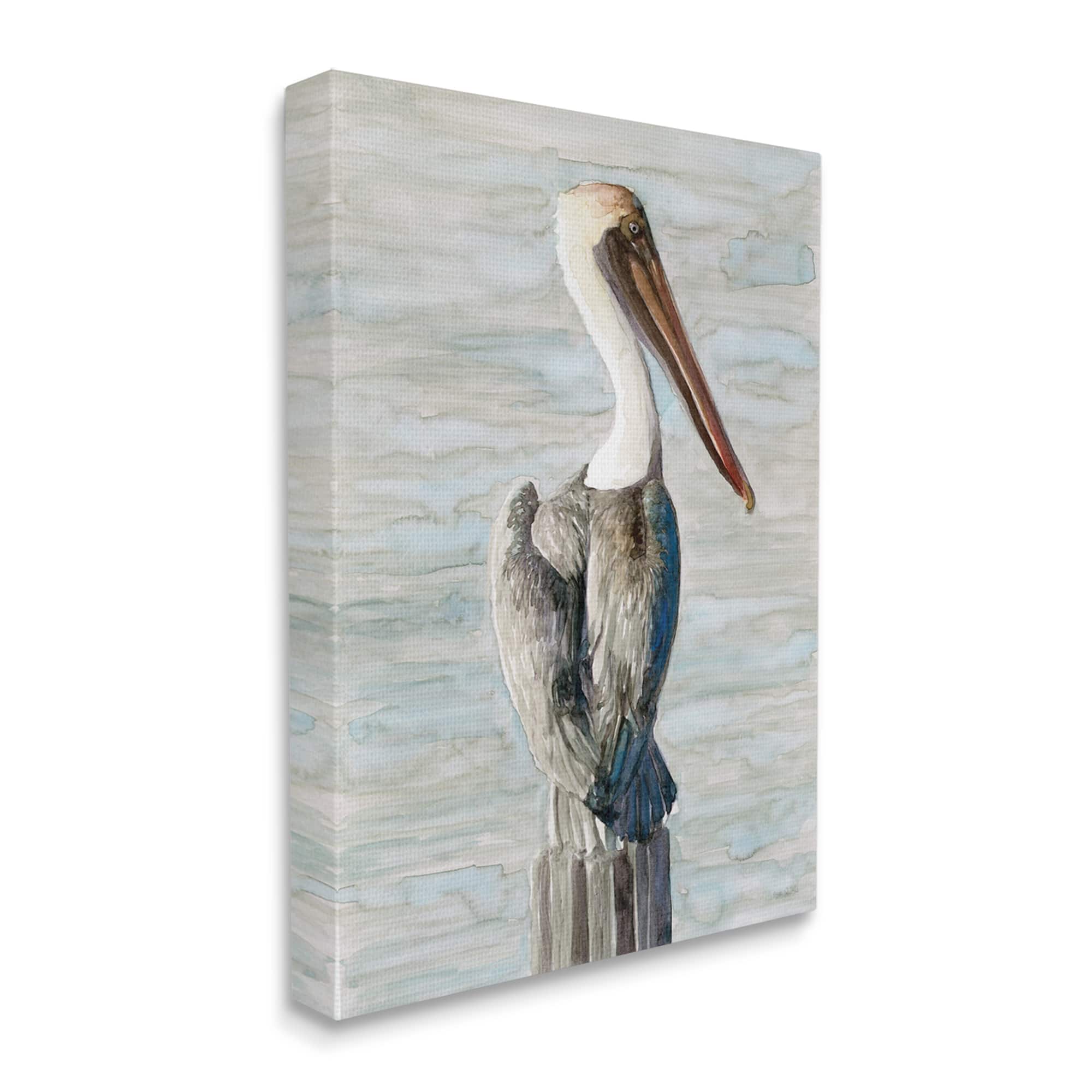 Stupell Industries Long Beak Pelican Watercolor Painting Coastal Waterfowl Bird Canvas Wall Art