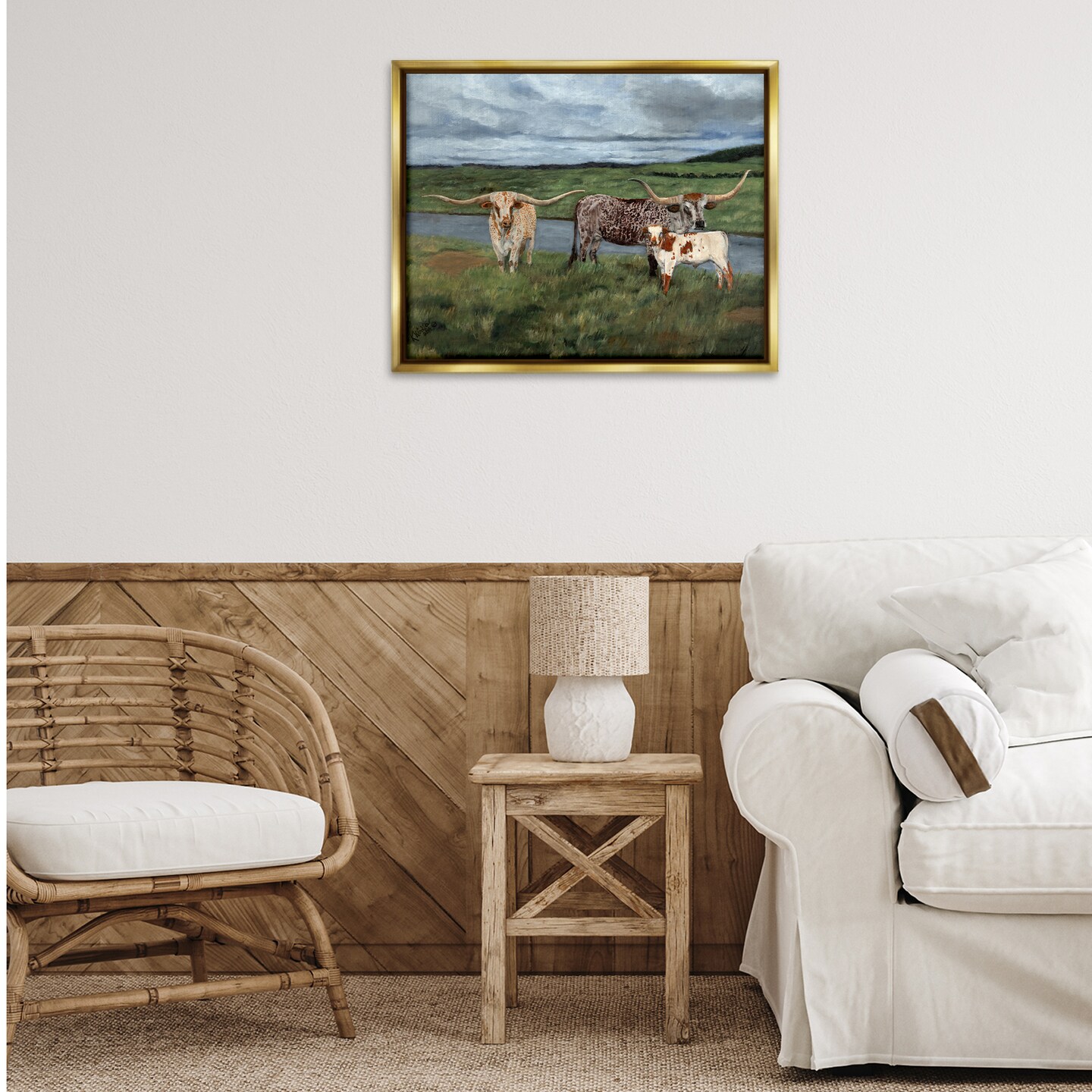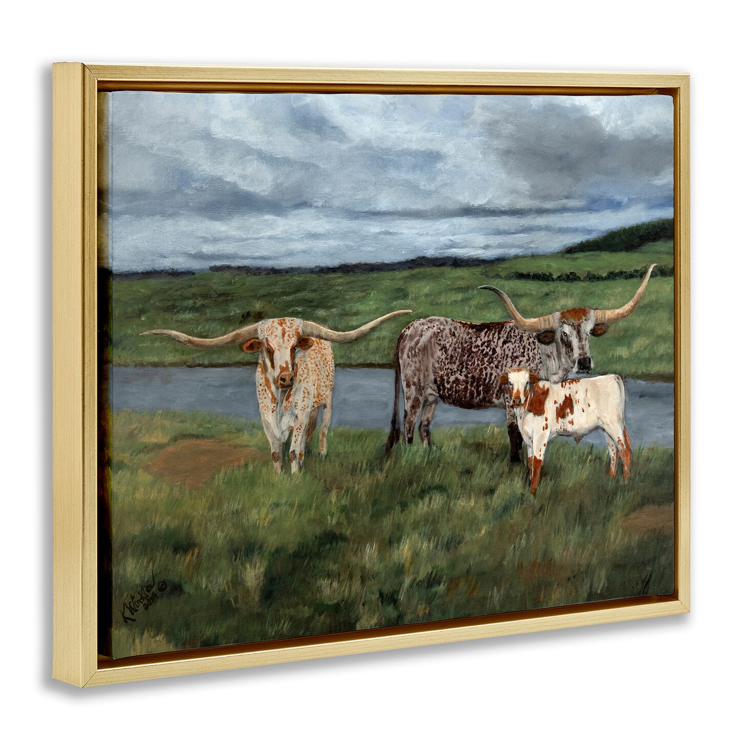 Stupell Industries Longhorn Cattle Trio Floating Frame By Kathy Winkler