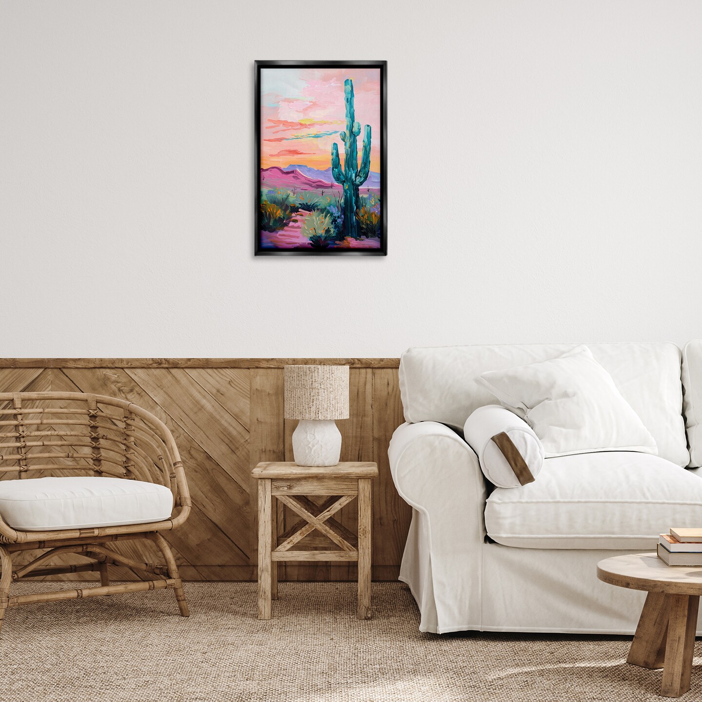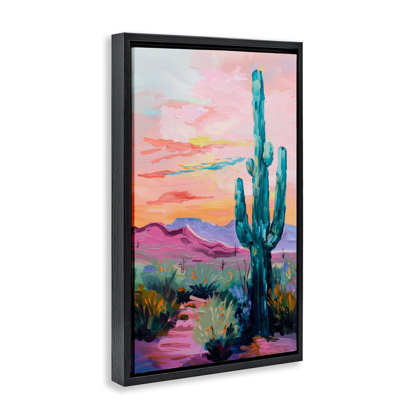 Stupell Industries Looming Cactus Pastel Sky Floater Framed Canvas Wall Art Design by Petal Prints Design