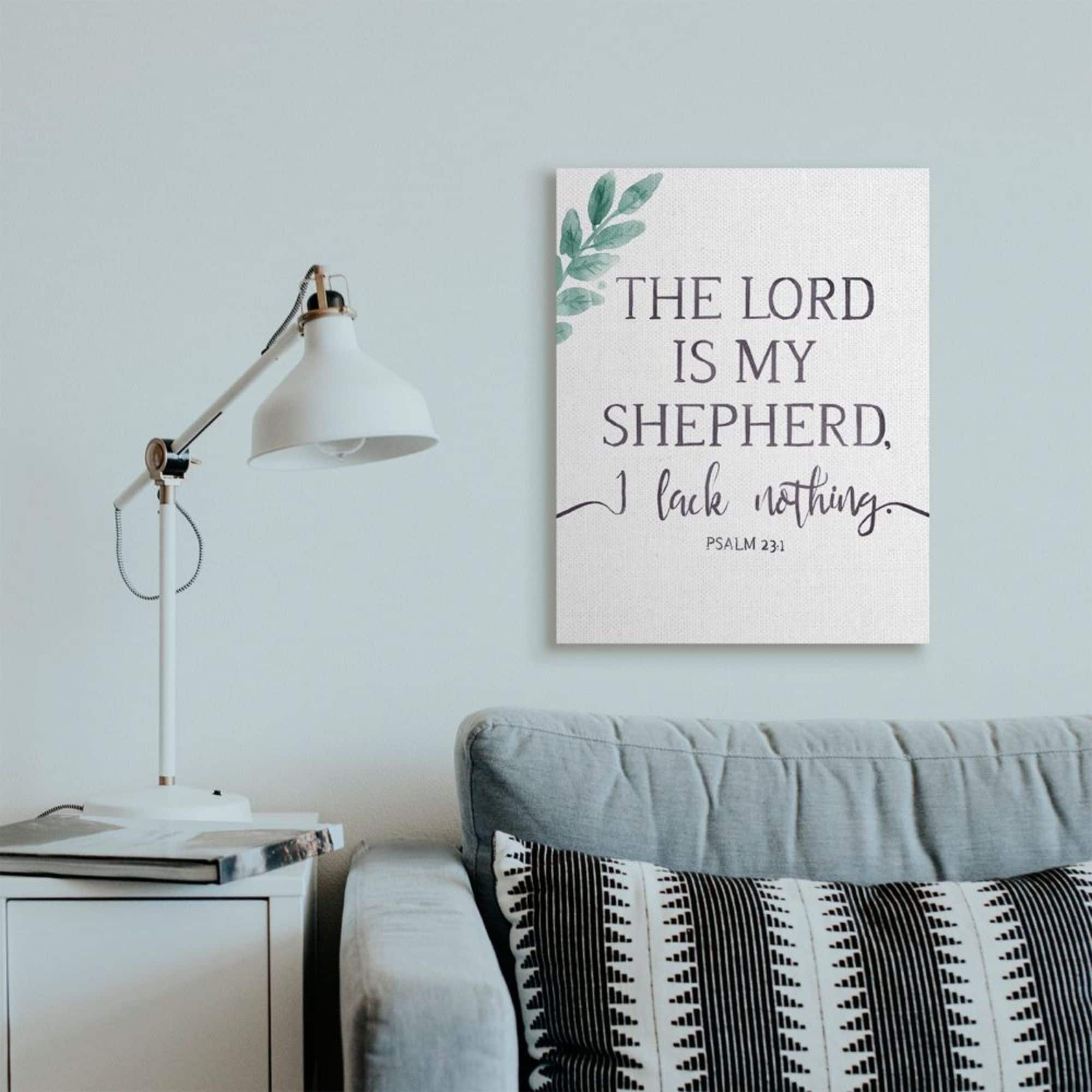 Stupell Industries Lord Is My Shepherd Faith Phrase Plant Greenery Canvas Wall Art