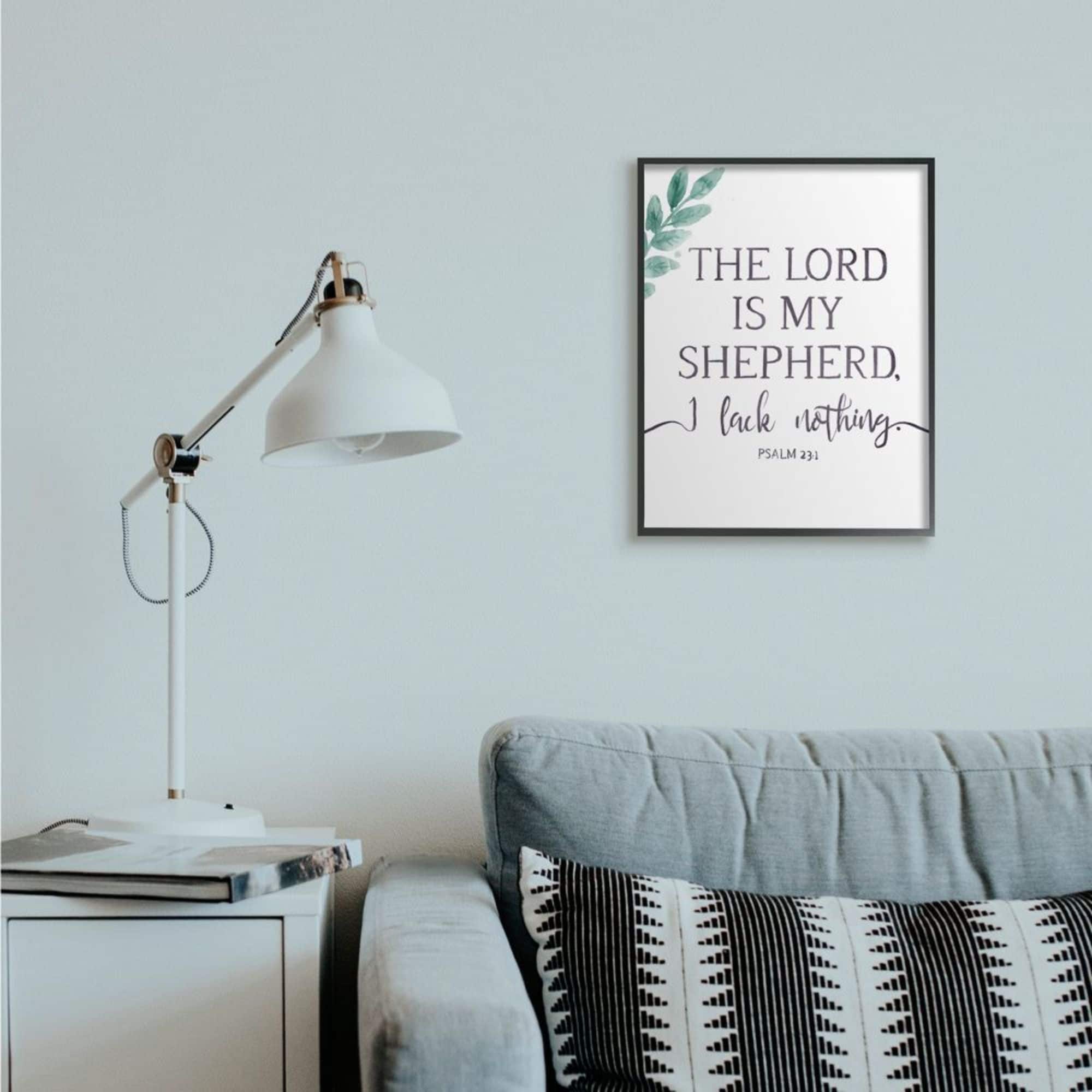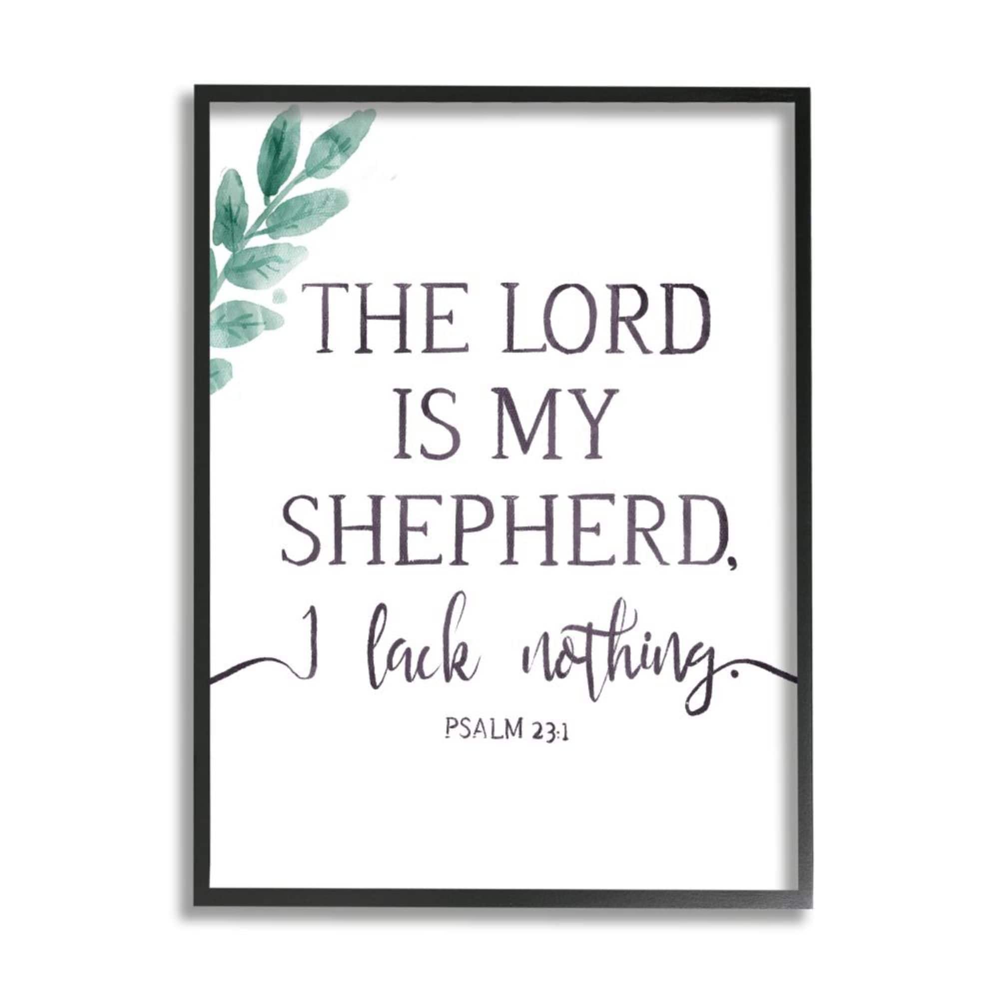 Stupell Industries Lord Is My Shepherd Faith Phrase Plant Greenery Framed Wall Art