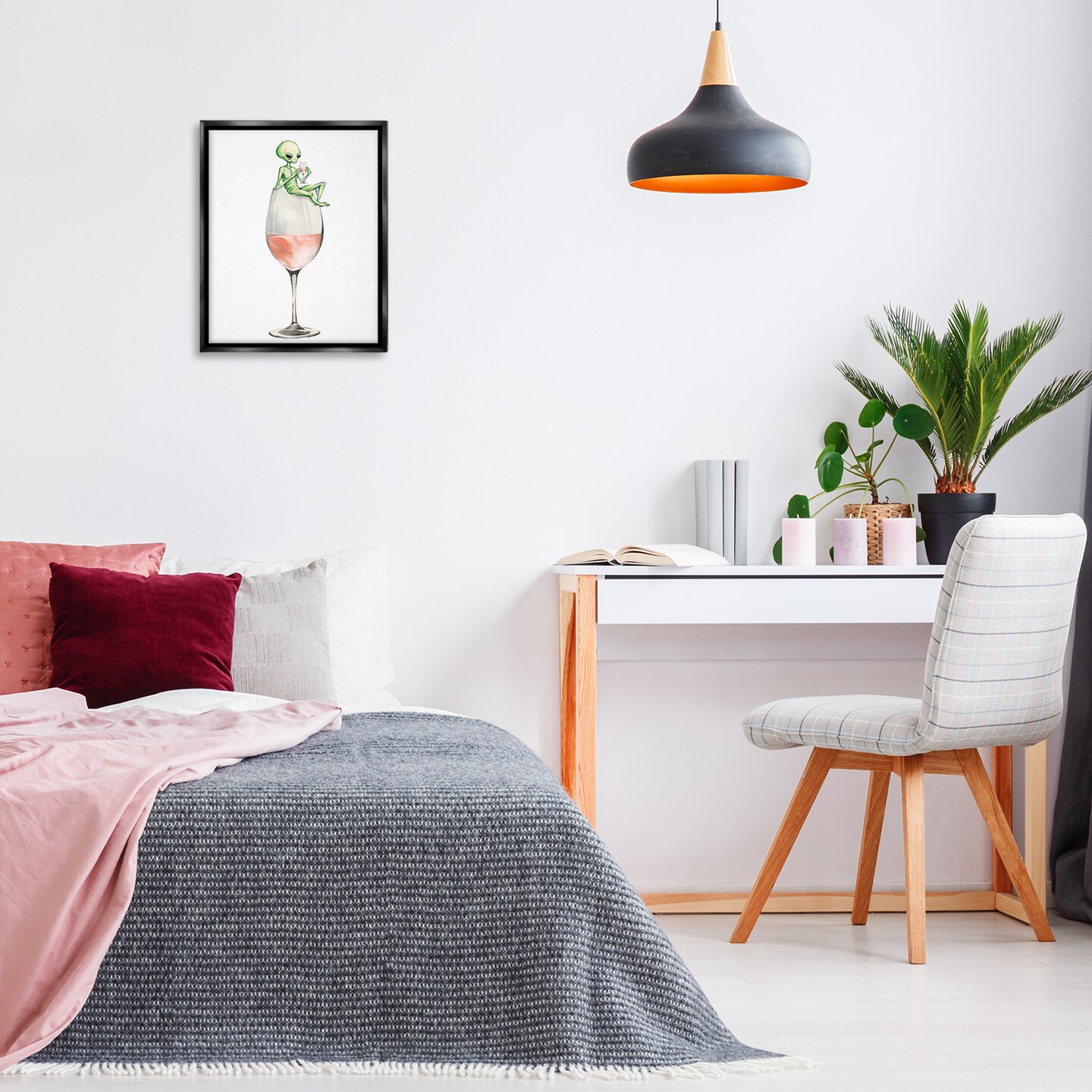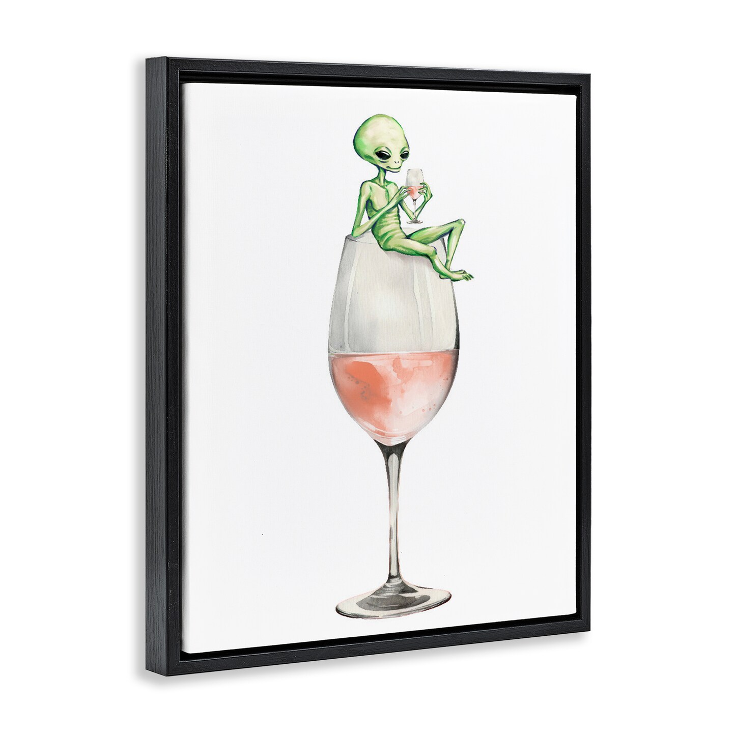 Stupell Industries Lounging Alien on Wine Glass Floating Frame Design by Lil' Rue