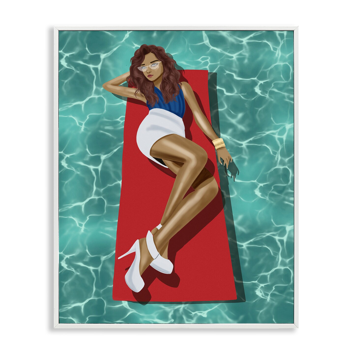 Stupell Industries Lounging on Pool Raft Framed Giclee Wall Art Design by Saba Rauf