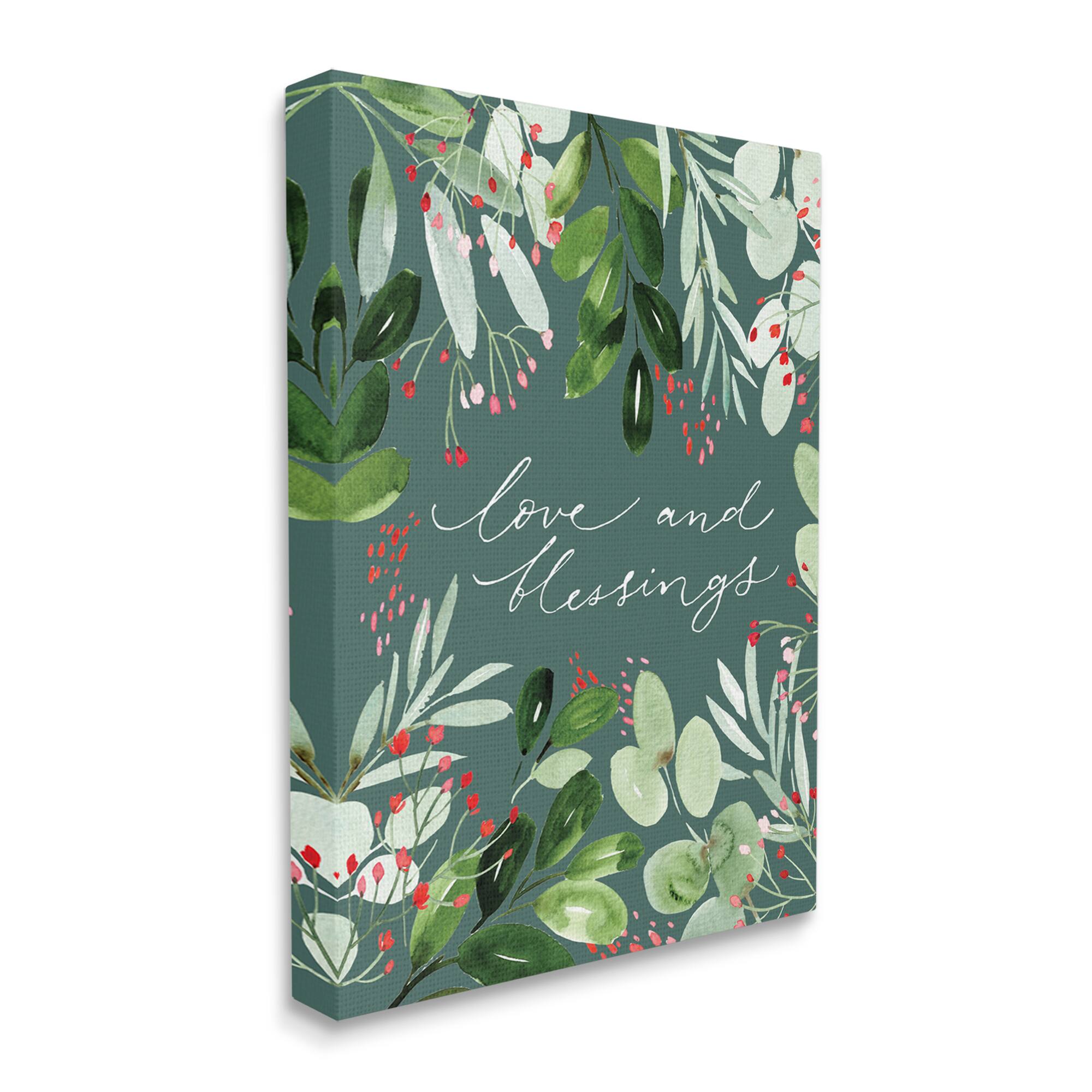 Stupell Industries Love & Blessings Green Floral Leaves Canvas Wall Art
