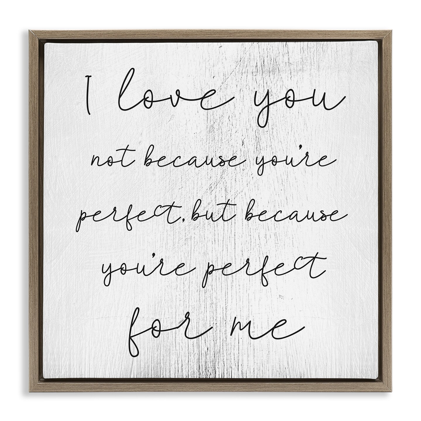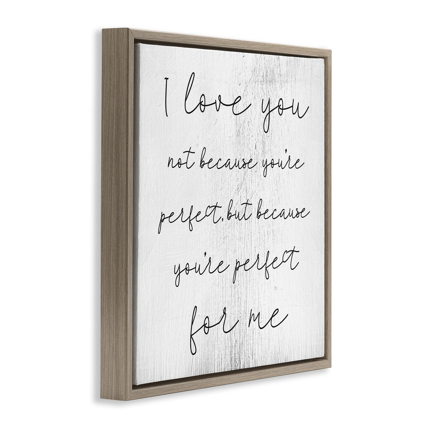 Stupell Industries Love Not Perfect Inspirational Romance Framed Floater Canvas Wall Art
