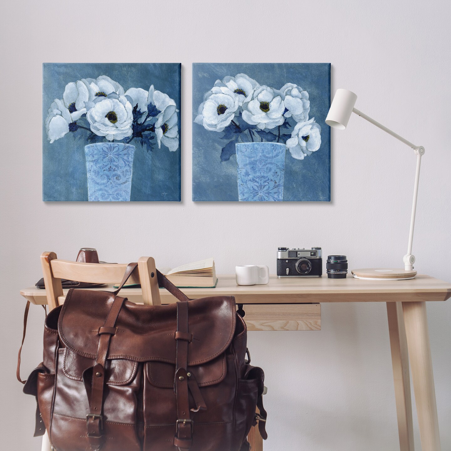 Stupell Industries Magnolia Bouquets on Blue 2pc Canvas Wall Art Set Design by Janet Tava