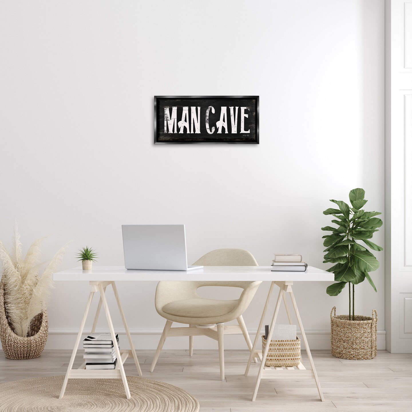 Stupell Industries Man Cave Black And White Framed Floater Canvas Wall Art