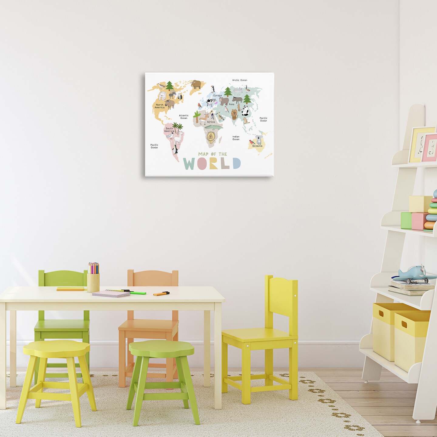 Stupell Industries Map Of World Pastel Animals Canvas, design by Carla Daly