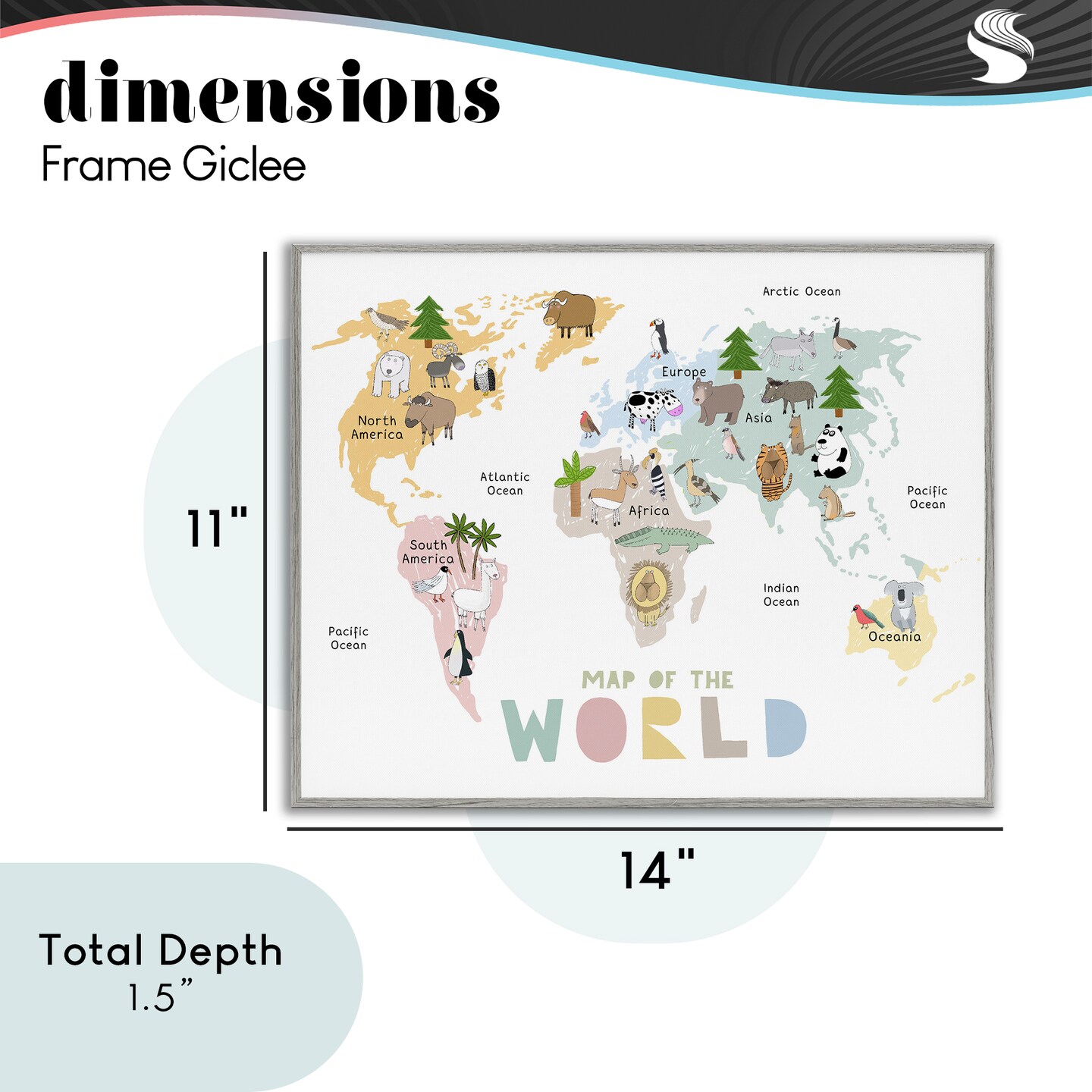 Stupell Industries Map Of World Pastel Animals Framed Giclee, design by Carla Daly