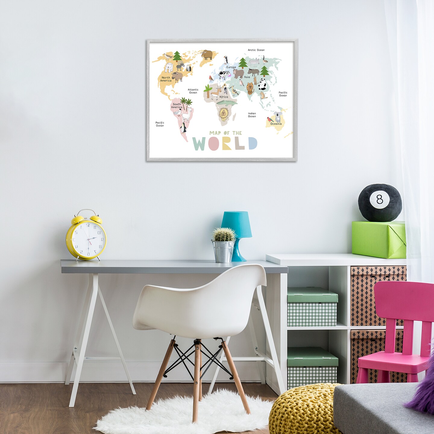 Stupell Industries Map Of World Pastel Animals Framed Giclee, design by Carla Daly