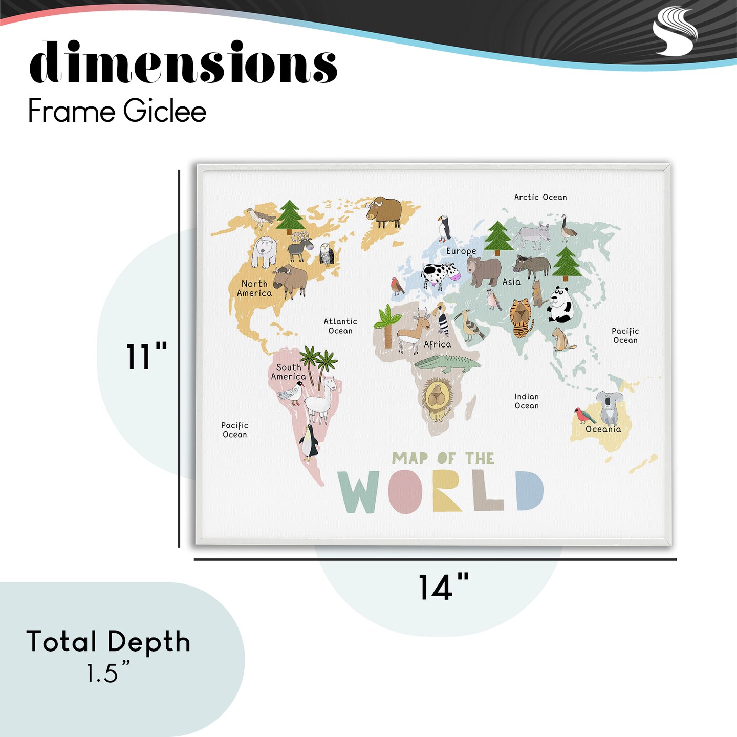 Stupell Industries Map Of World Pastel Animals Framed Giclee, design by Carla Daly