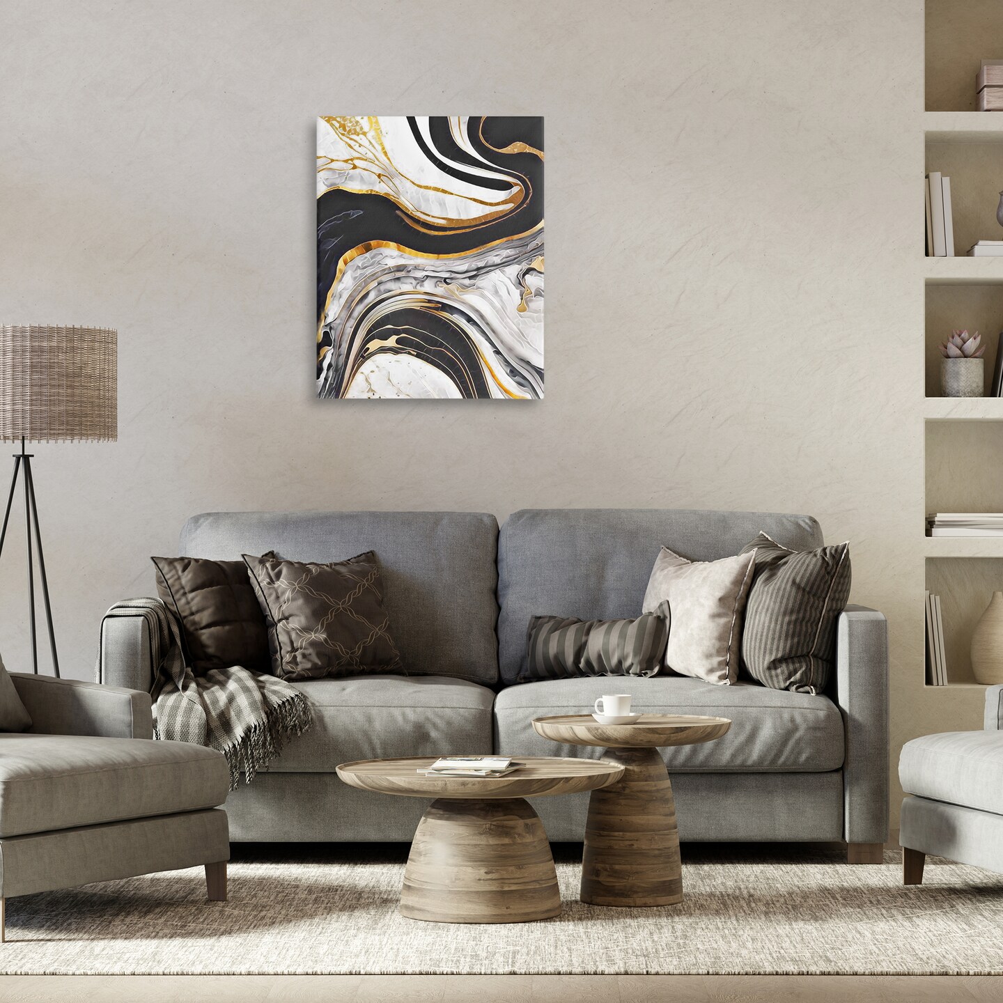 Stupell Industries Marbled Fluid Gold Accent Canvas Wall Art Design by Jesse Keith