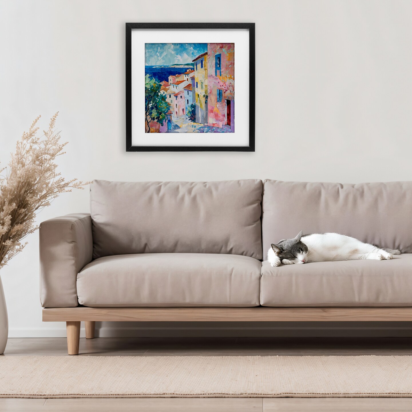 Stupell Industries Mediterranean Coastal Town Framed Print Under Glass, design by LSR Creative Studio