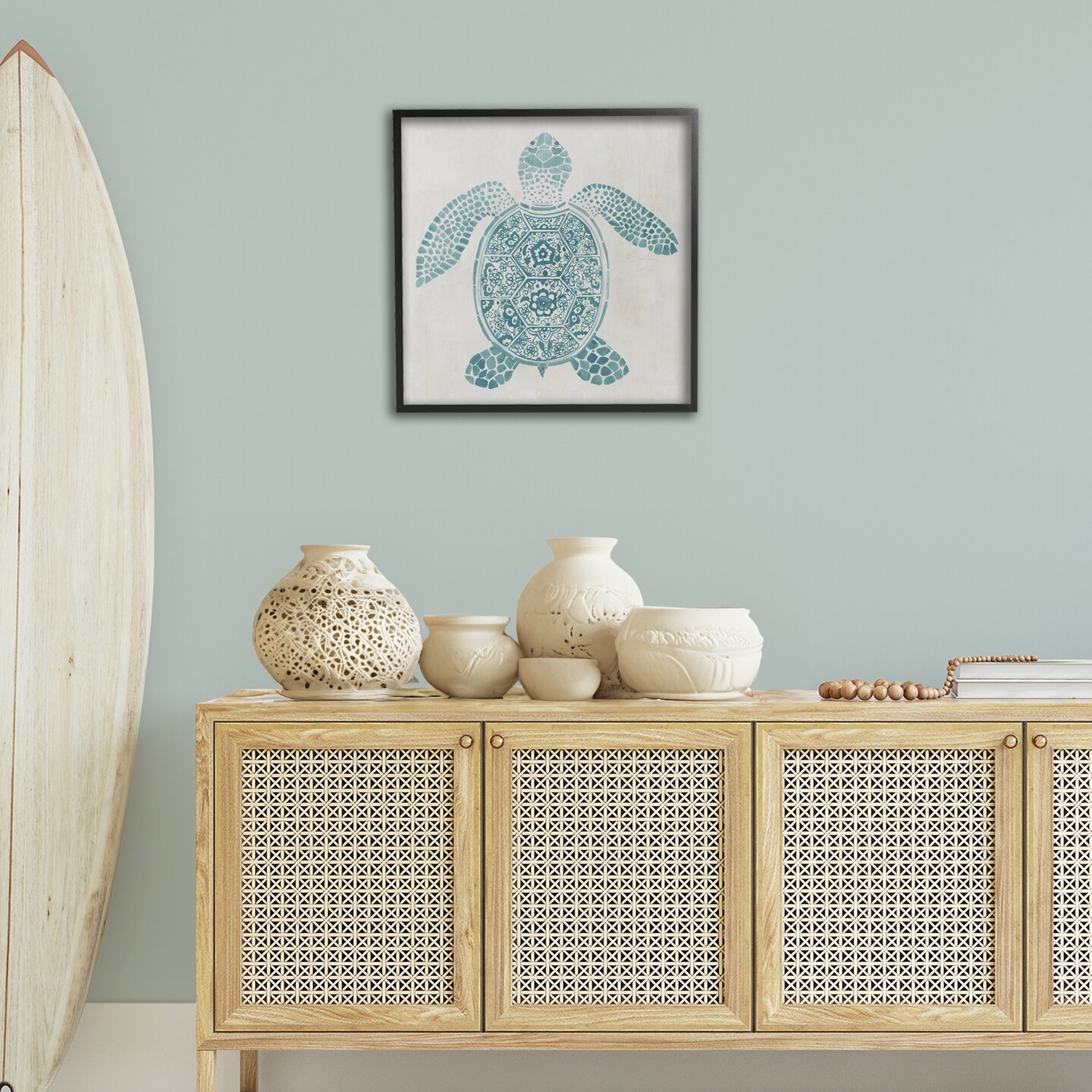 Stupell Industries Mediterranean Patterned Turtle Framed Giclee By Hannah Dawson