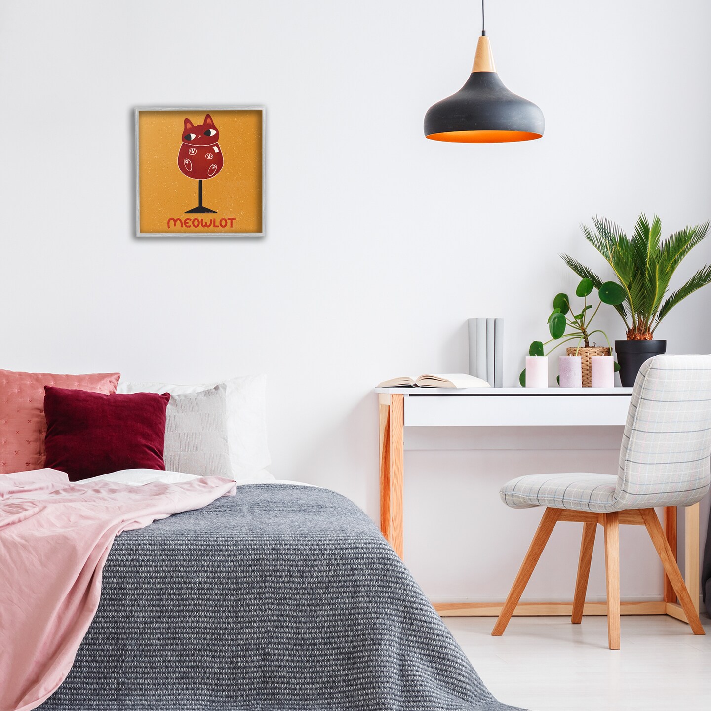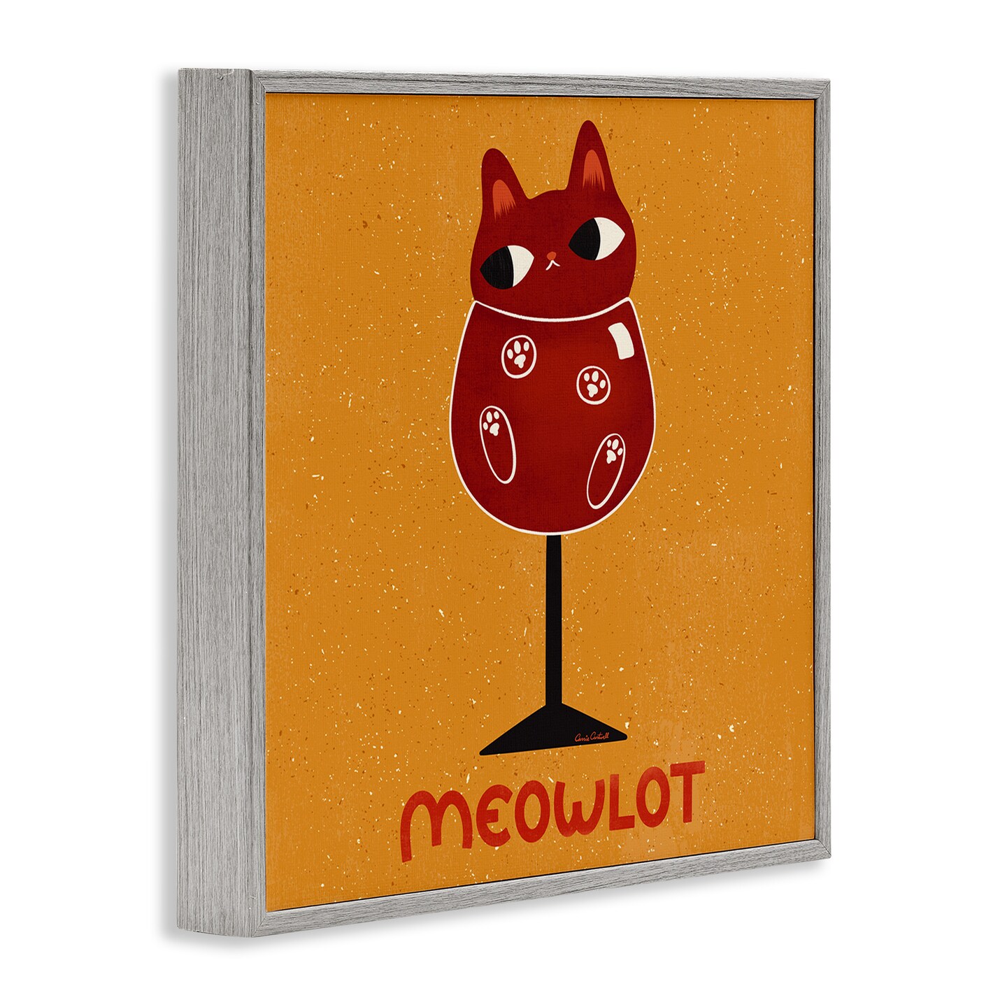 Stupell Industries Meowlot Cat Merlot Framed Giclee Design by Carrie Cantwell