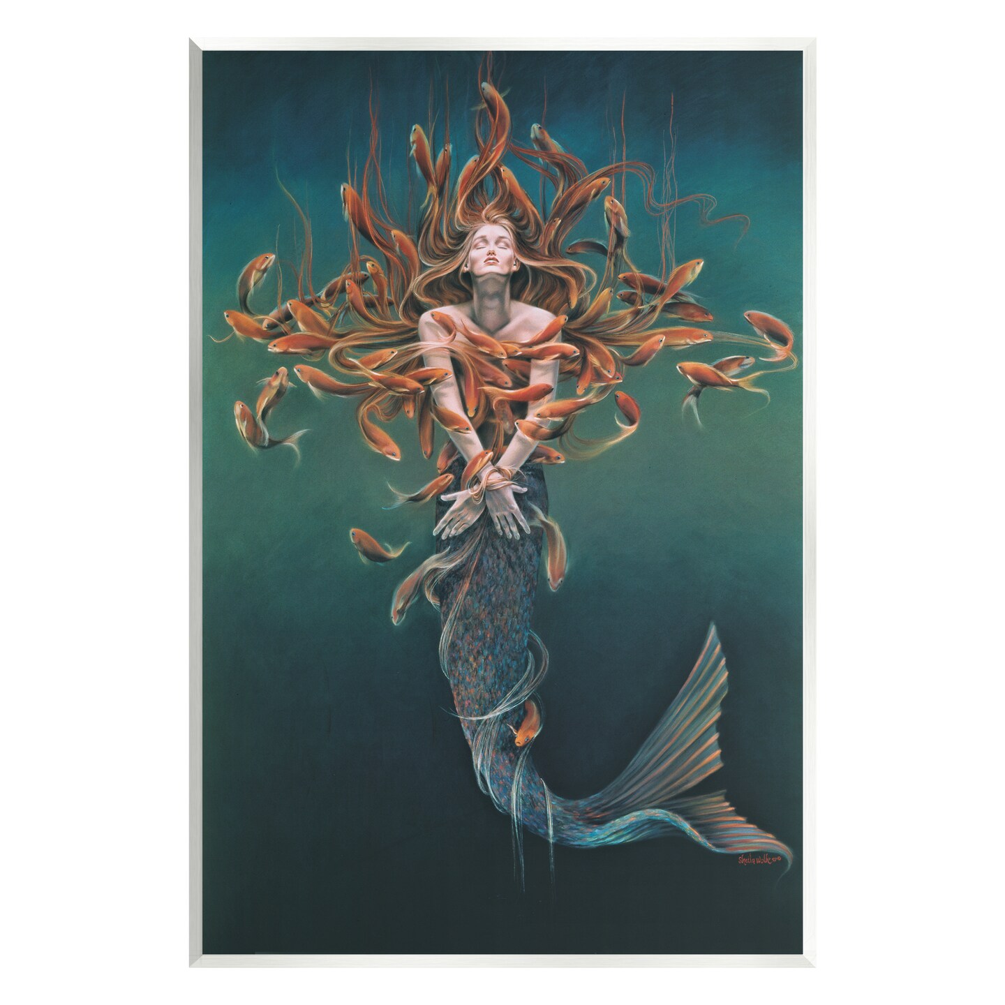 Stupell Industries Mermaid Fish Swirling Painting Wall Plaque Art