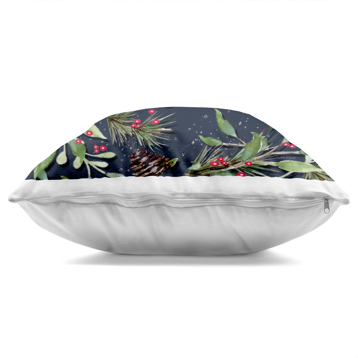 Stupell Industries Merry & Bright with Holly Leaves Decorative Printed Pillow design by Elizabeth Tyndall, 18 x 7 x 18