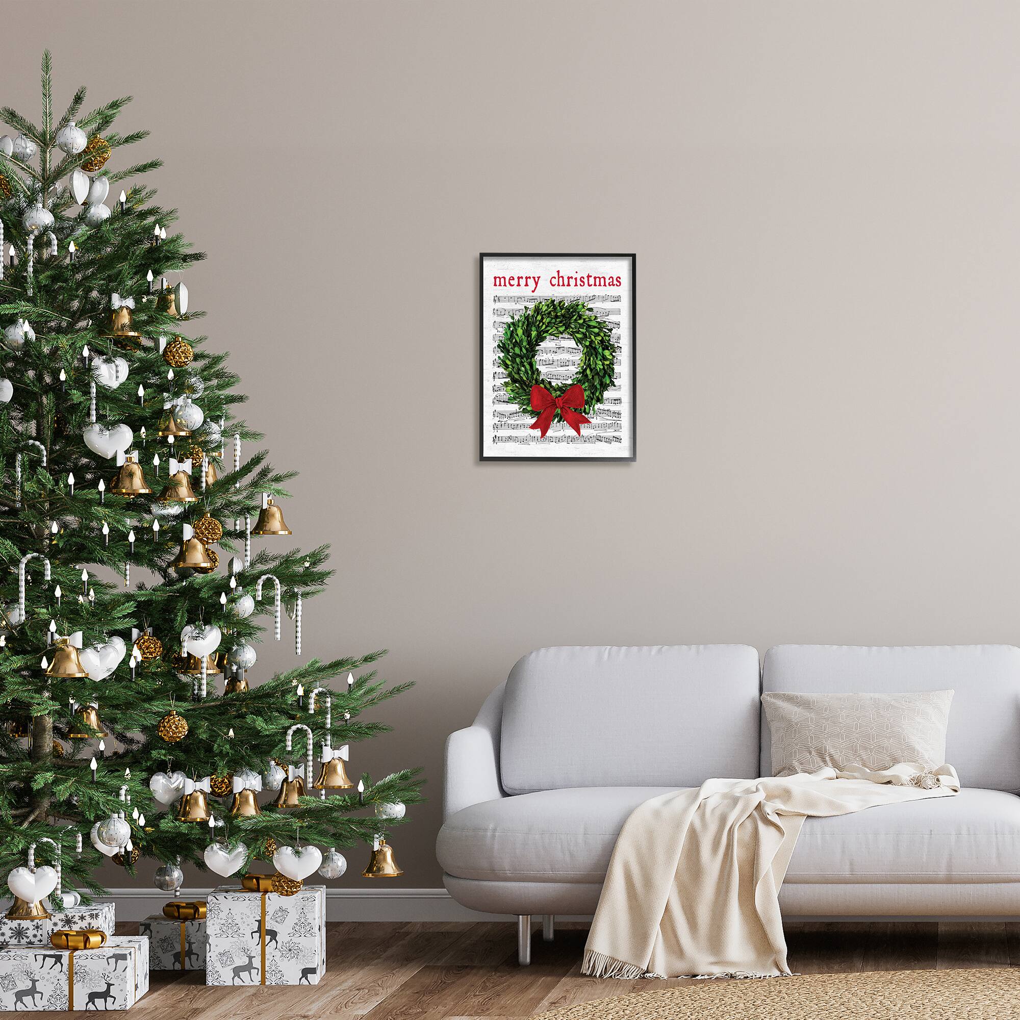 Stupell Industries Merry Christmas Song Wreath Framed Giclee Art