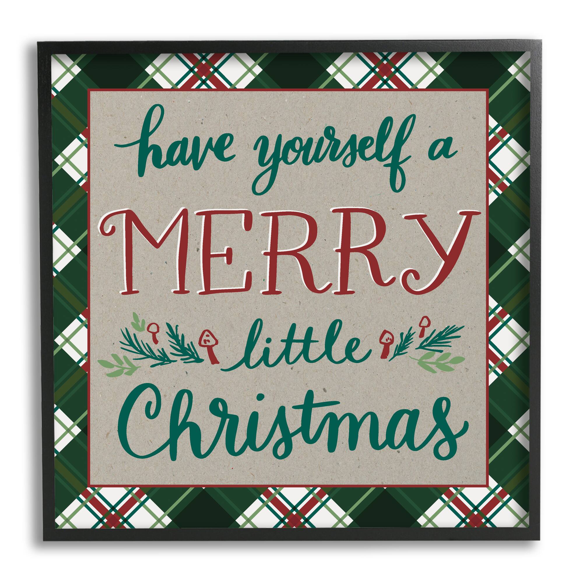 Stupell Industries Merry Little Christmas Plaid Holiday Framed Giclee Art