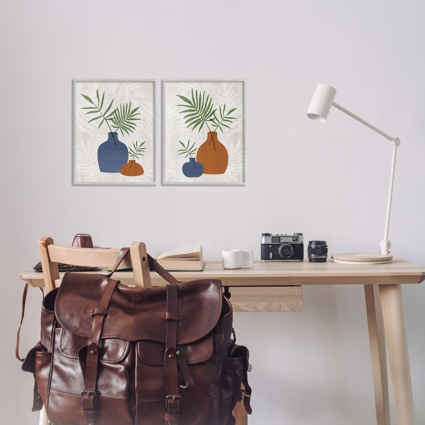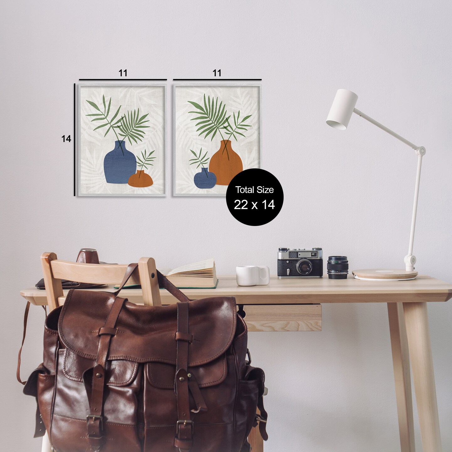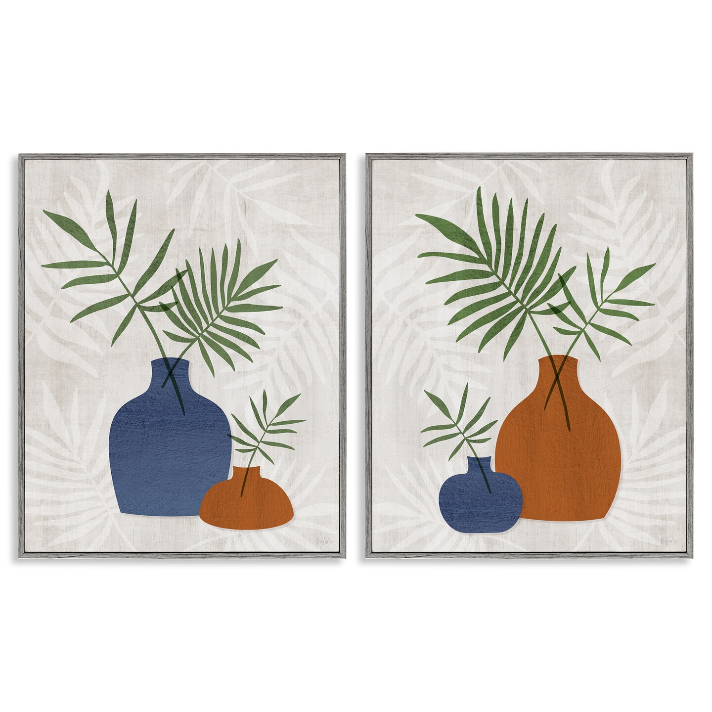 Stupell Industries Midcentury Palm Vases 2pc Framed Giclee Wall Art Set Design by Natalie Carpentieri