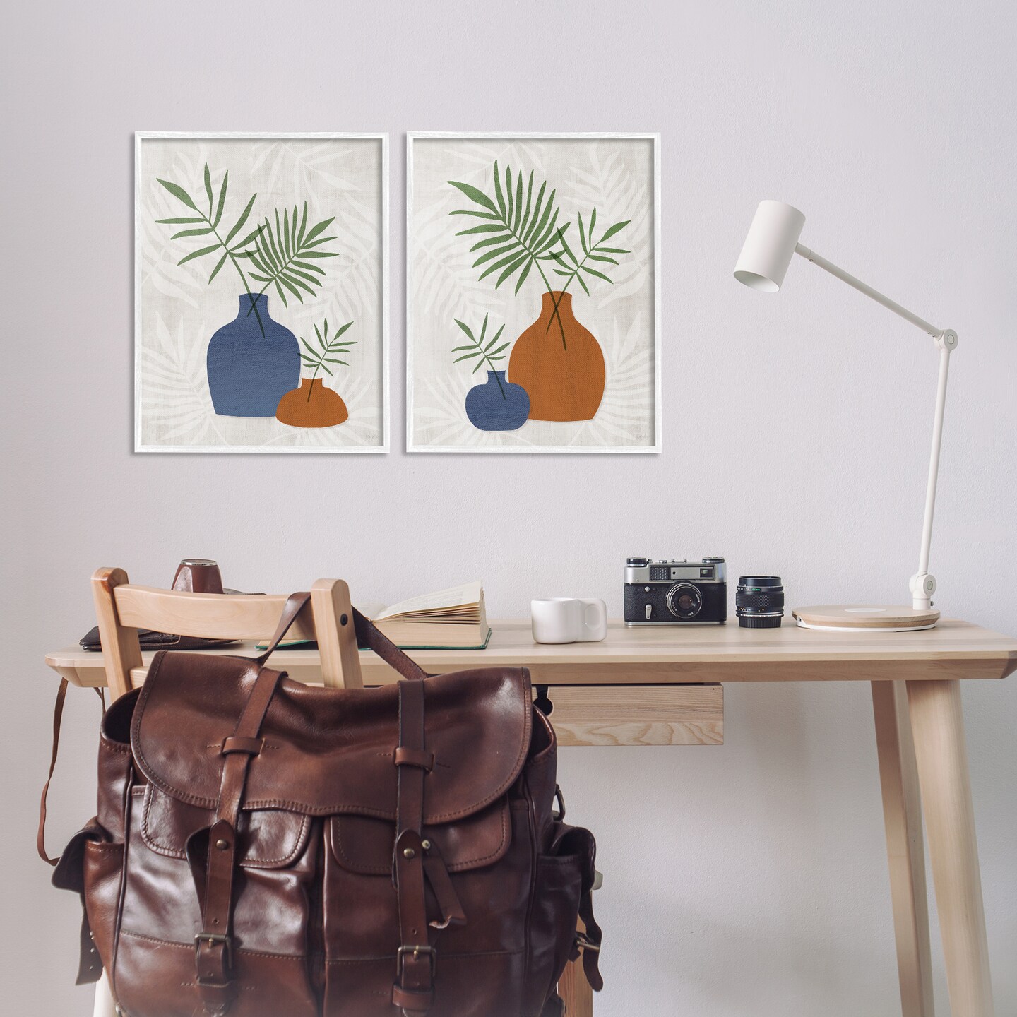 Stupell Industries Midcentury Palm Vases 2pc Framed Giclee Wall Art Set Design by Natalie Carpentieri