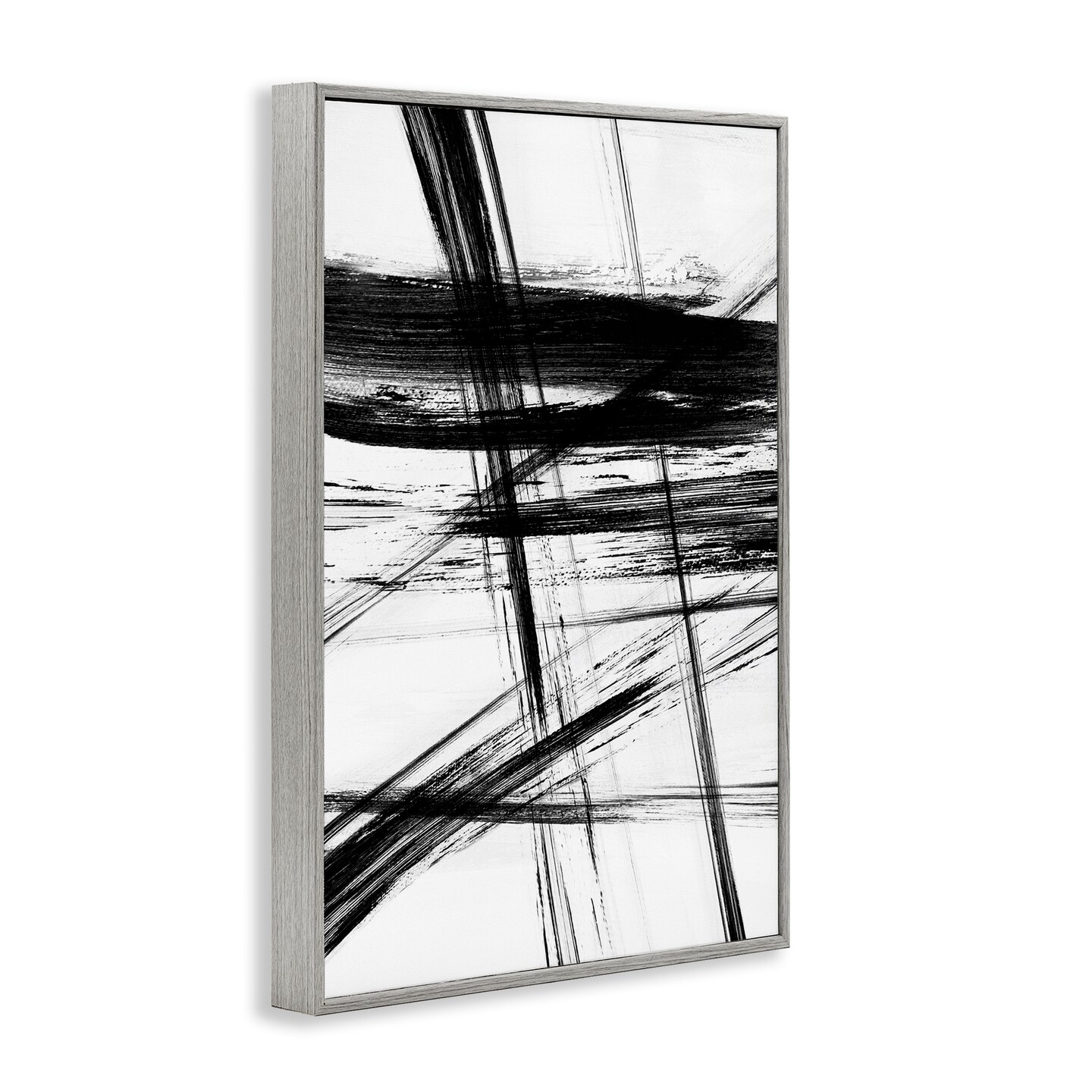 Stupell Industries Minimal Black Streaks on White Framed Giclee By Judith Shapiro