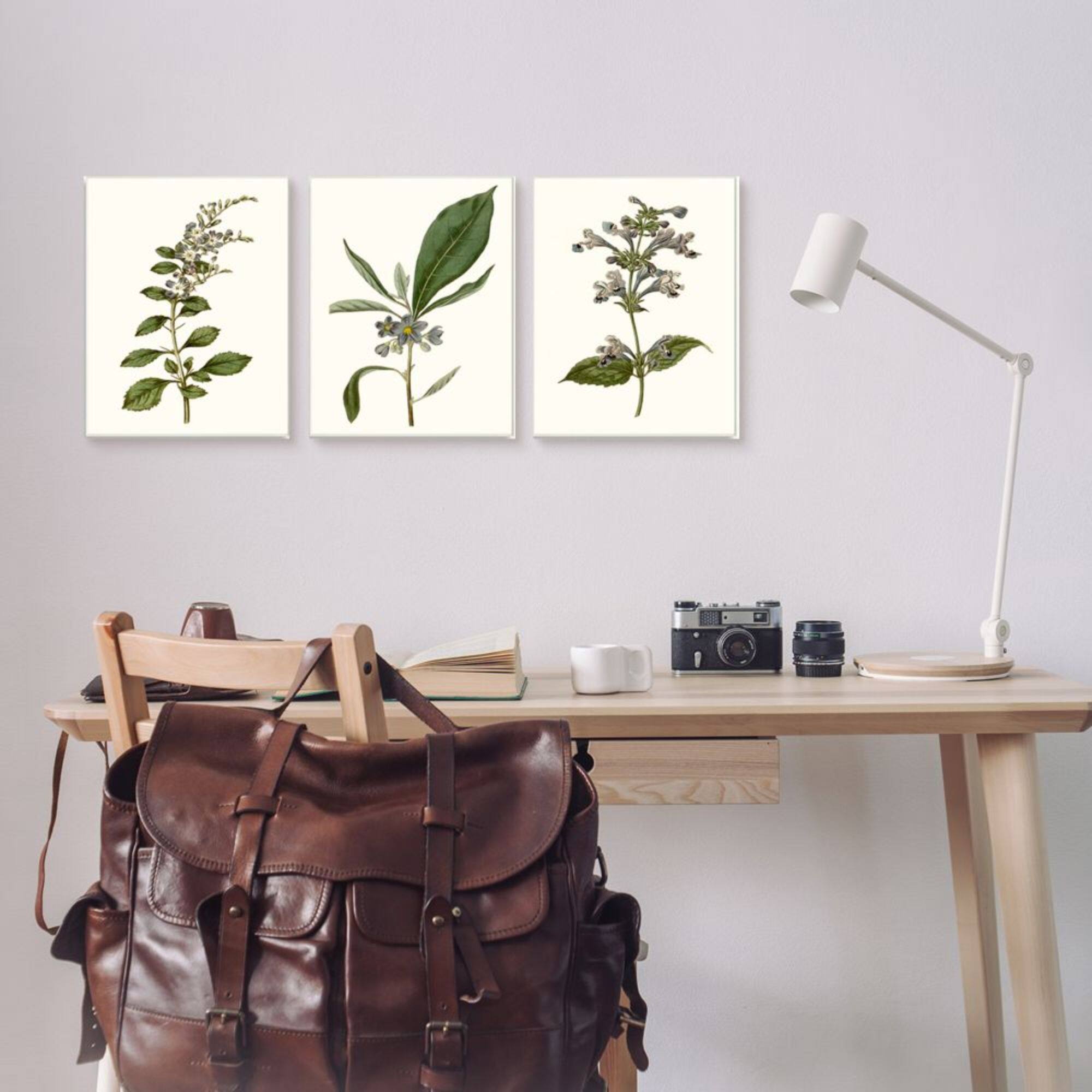Stupell Industries Minimal Blue Botanical Study Over Neutral Beige in Black Frame Wall Art