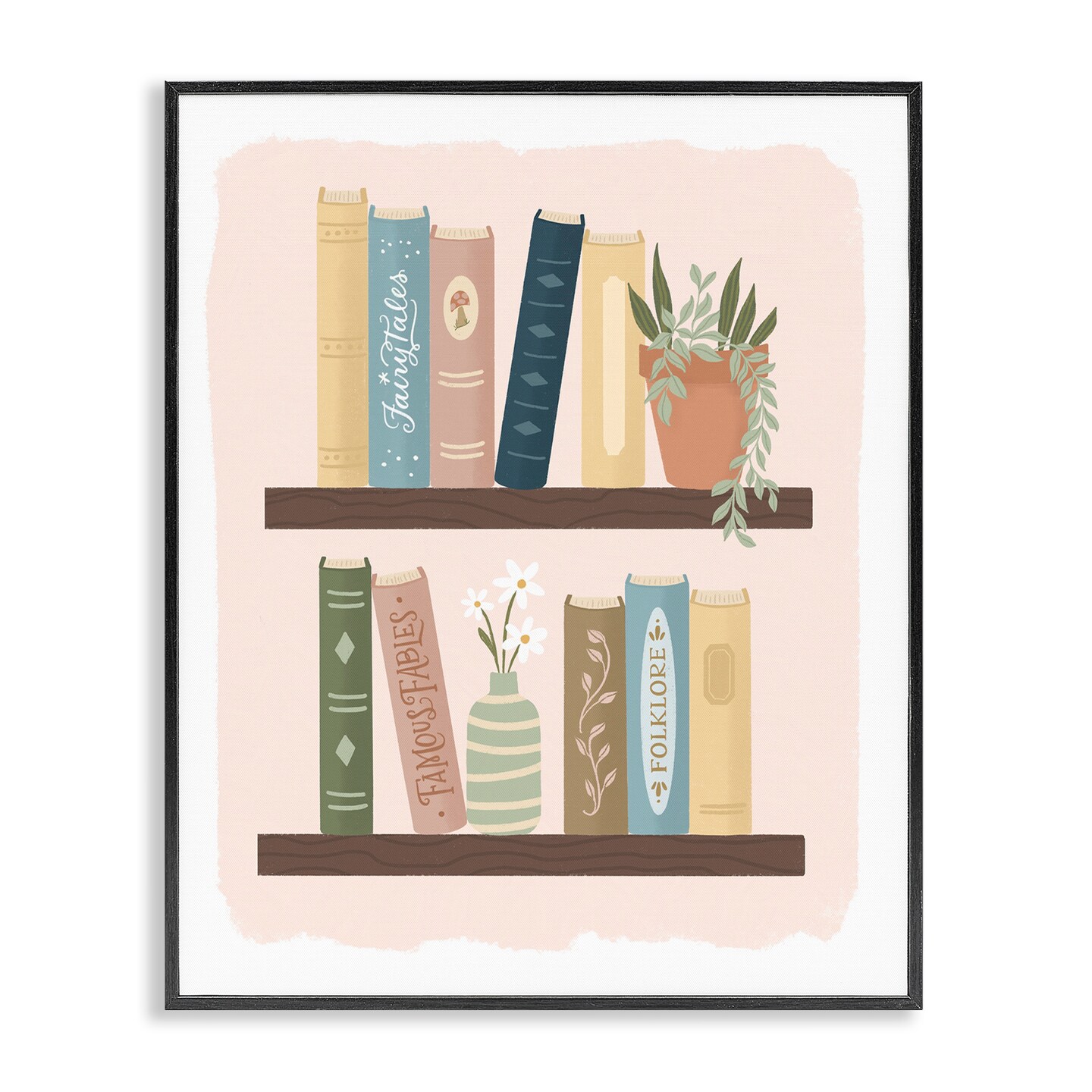 Stupell Industries Minimal Bookshelves with Plant Black Framed Giclee Art, design by Sandra Picco