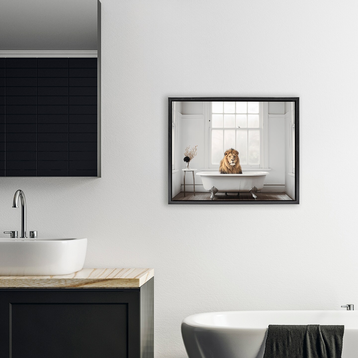 Stupell Industries Minimalist Lion Bathtime Floating Frame, design by Sasha