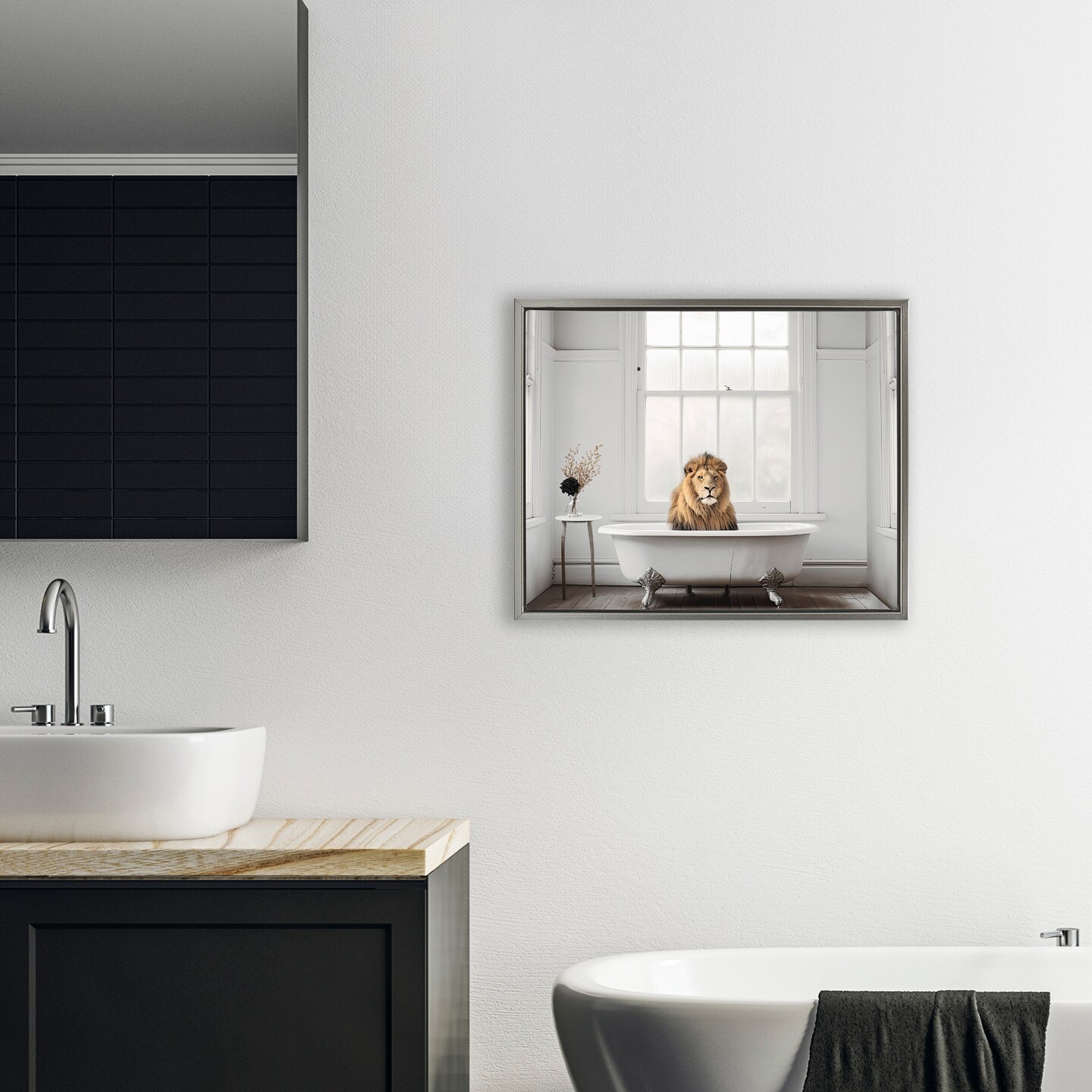 Stupell Industries Minimalist Lion Bathtime Floating Frame, design by Sasha