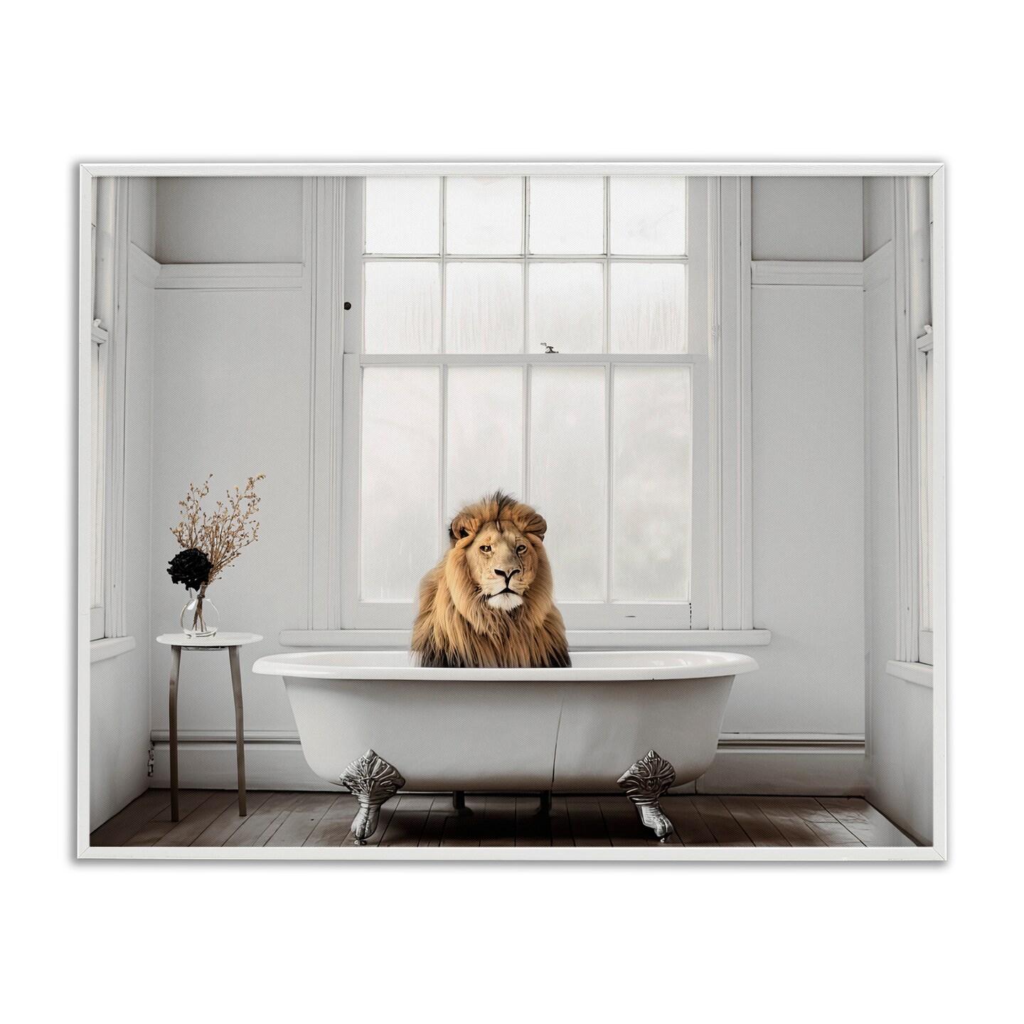 Stupell Industries Minimalist Lion Bathtime Framed Giclee, design by Sasha