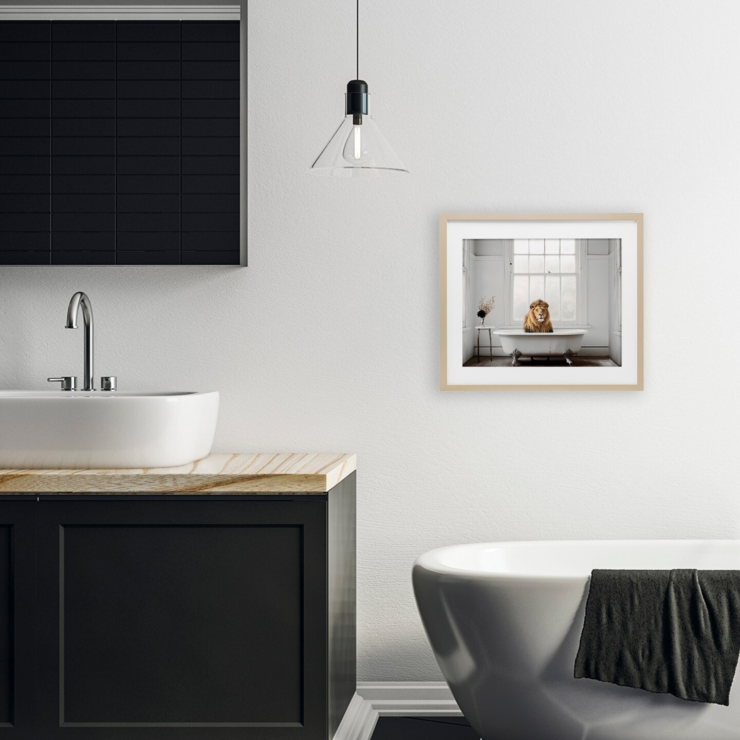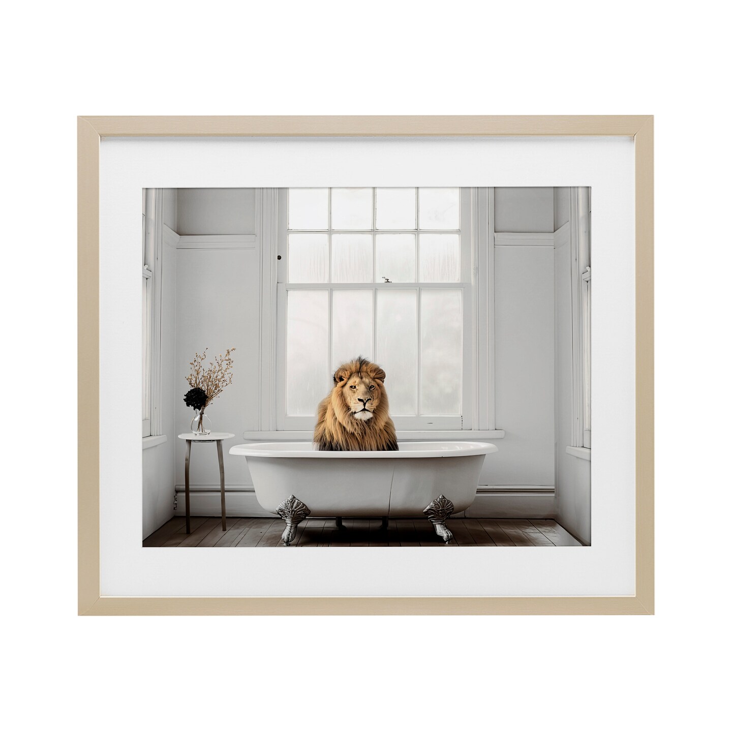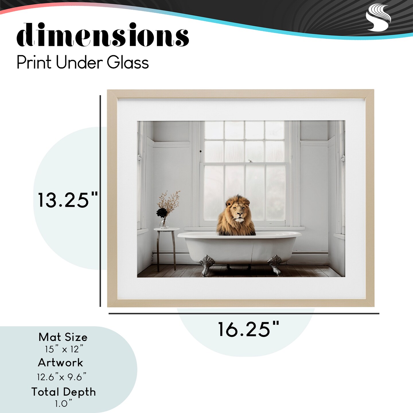 Stupell Industries Minimalist Lion Bathtime Framed Print Under Glass, design by Sasha