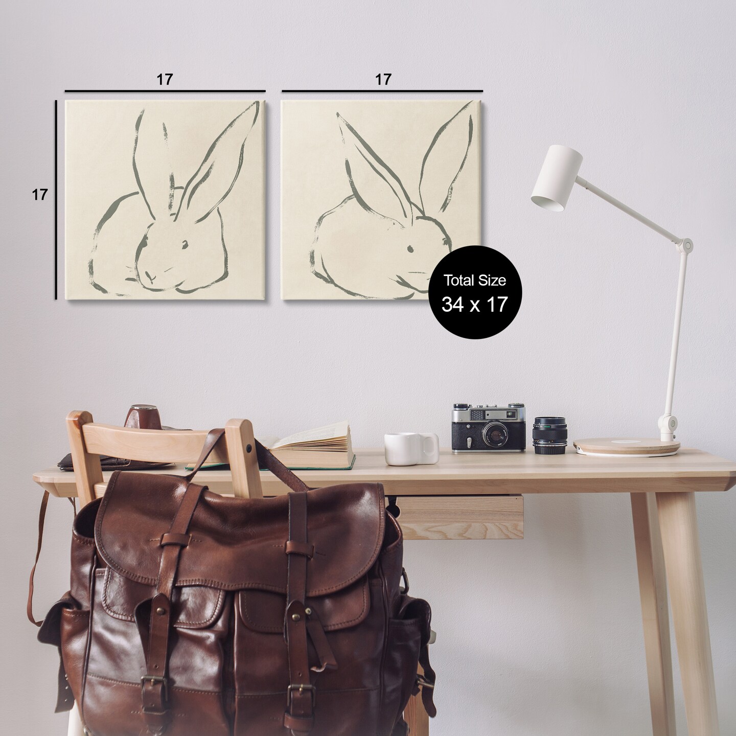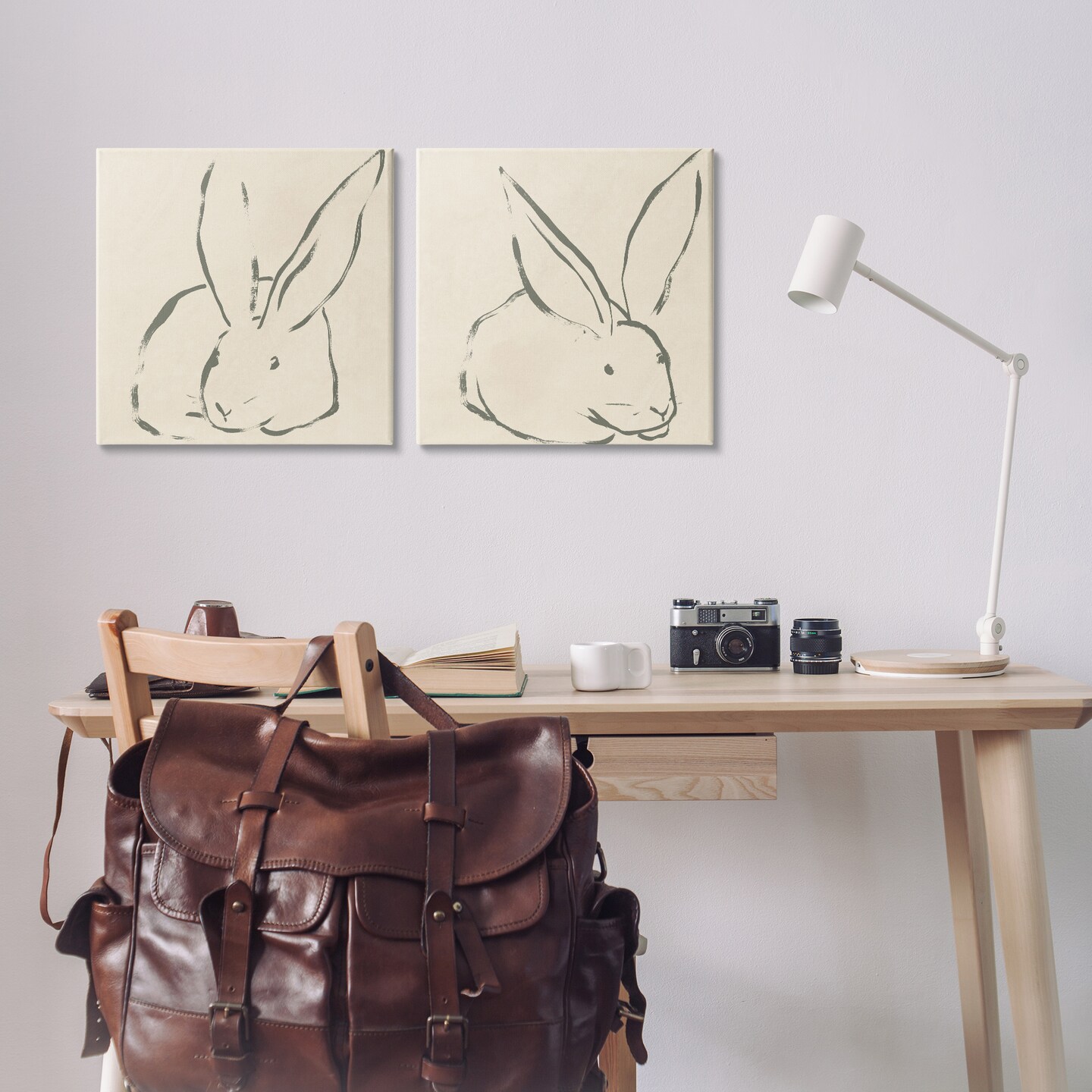Stupell Industries Minimalist Resting Rabbit Line Drawing 2 pc Canvas Wall Art Set Design by June Erica Vess