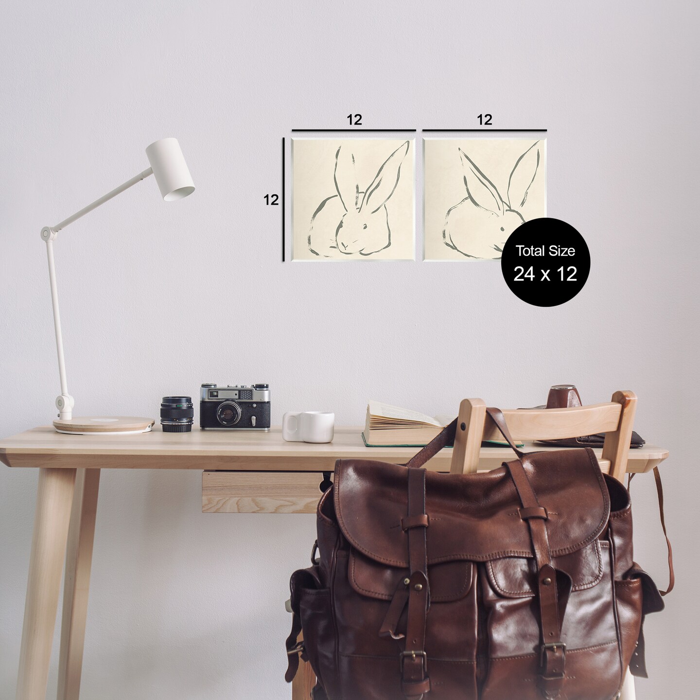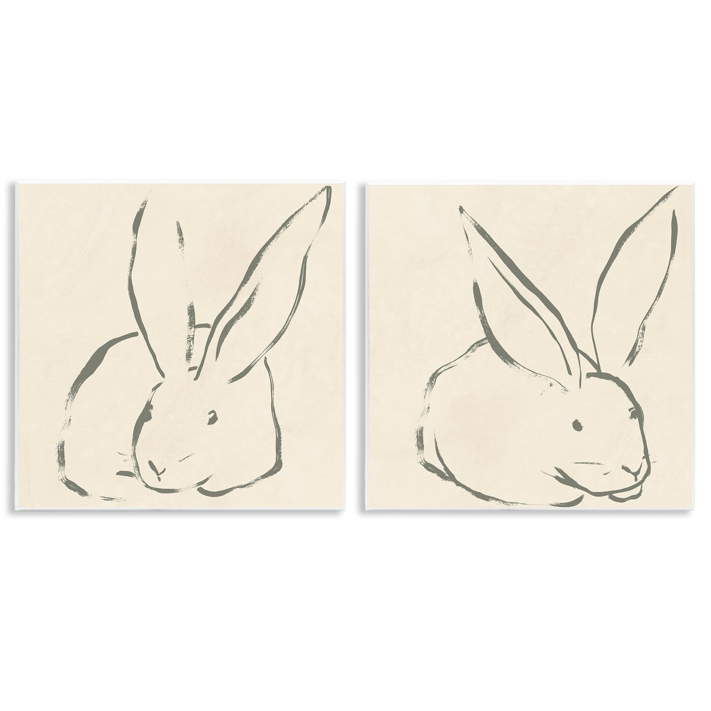 Stupell Industries Minimalist Resting Rabbit Line Drawing 2 pc Wall Plaque Art Set Design by June Erica Vess