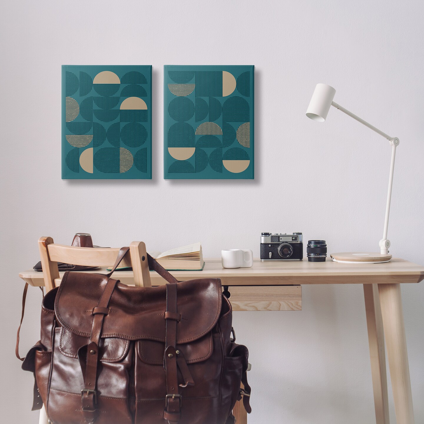 Stupell Industries Minimalist Teal Geometric 2 pc Canvas Wall Art Set Design by Vision Studio