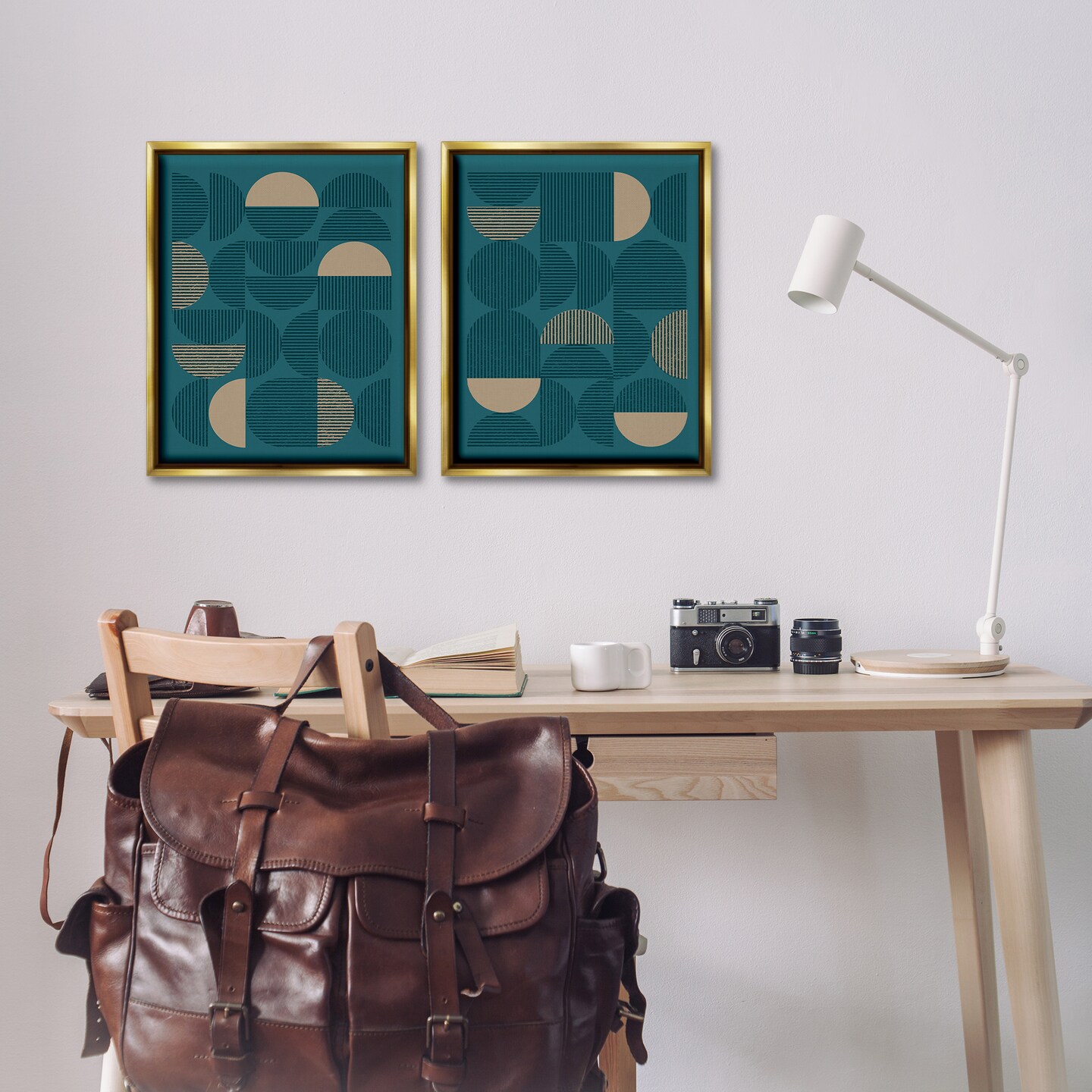 Stupell Industries Minimalist Teal Geometric 2 pc Framed Floater Canvas Wall Art Set Design by Vision Studio