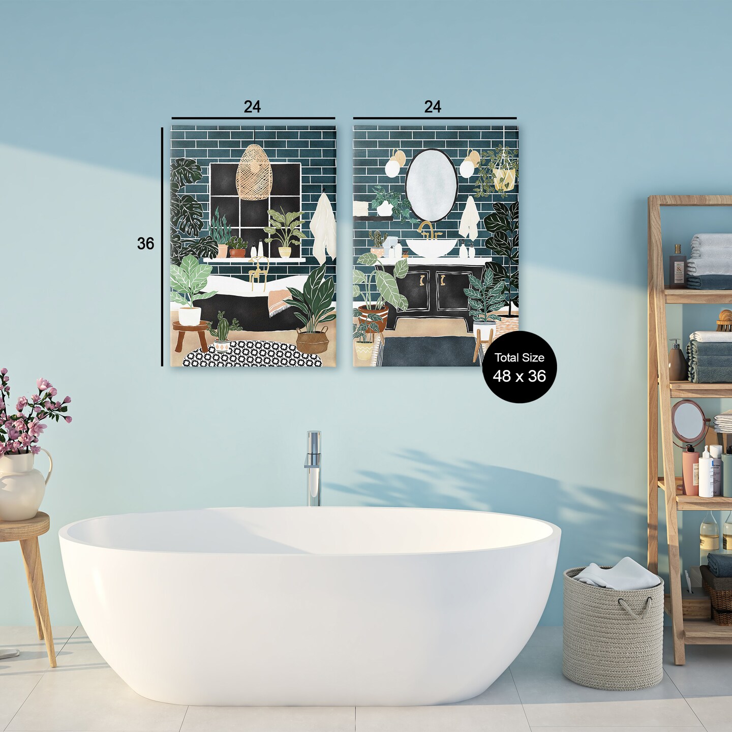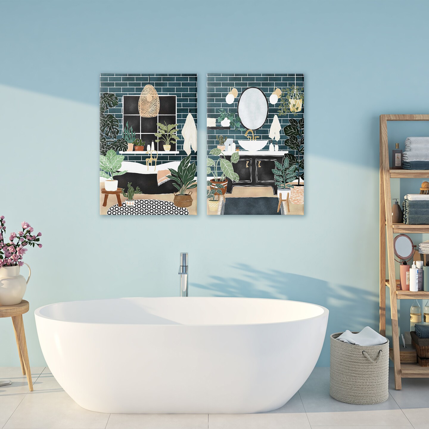 Stupell Industries Modern Bathroom with House Plants 2pc Canvas Set, design by JJ Design House LLC