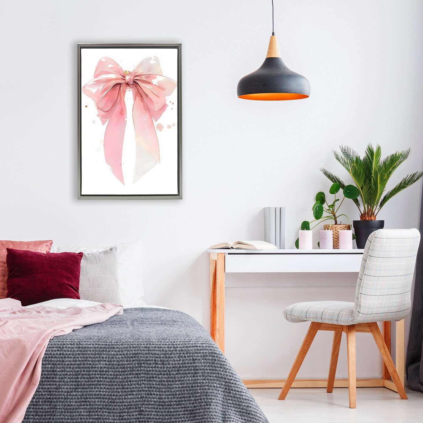 Stupell Industries Modern Elegant Pink Bow Black Framed Floater Canvas Wall Art, design by Creative Studio