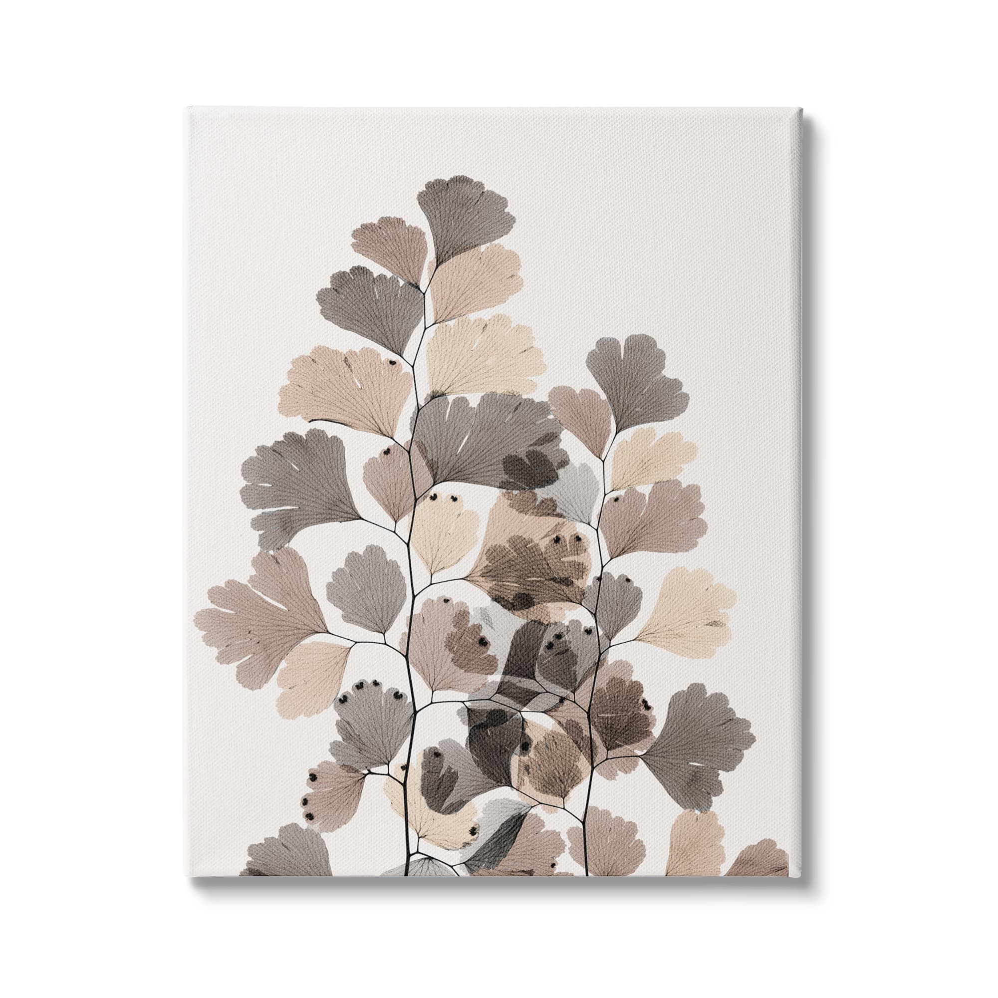 Stupell Industries Modern Ginkgo Leaf Arrangement Translucent Brown Grey Leaves Canvas Wall Art