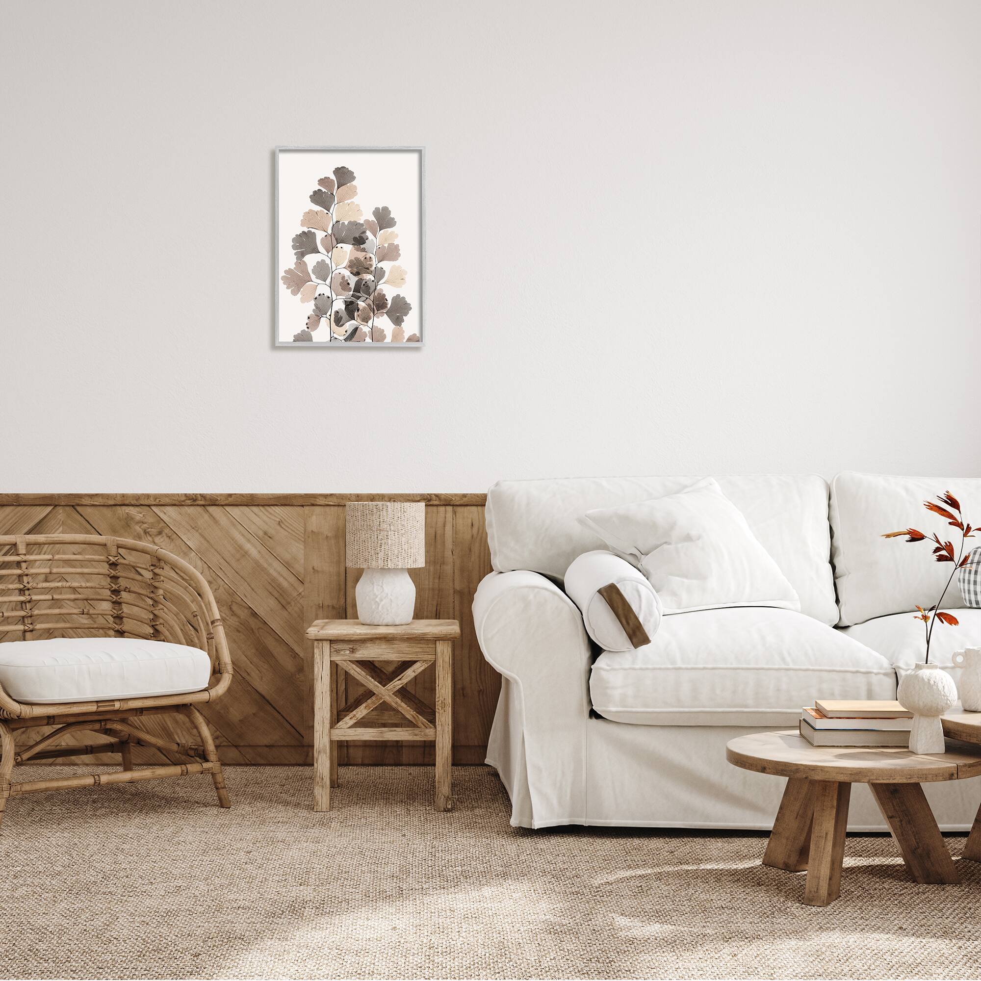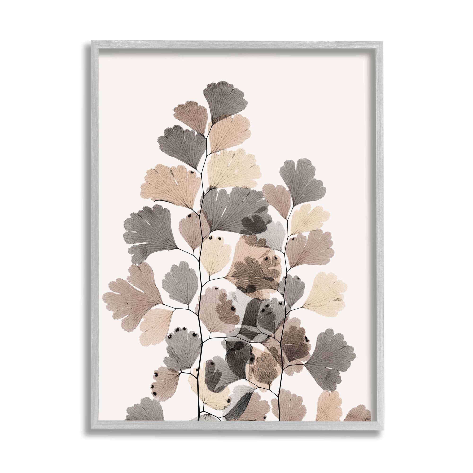 Stupell Industries Modern Ginkgo Leaf Arrangement Translucent Brown Grey Leaves Framed Wall Art