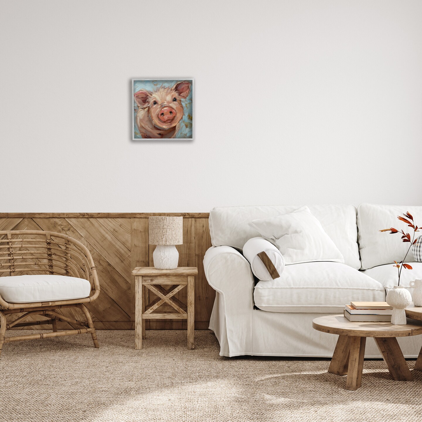 Stupell Industries Modern Pig Portrait Farm Animal Black Framed Giclee Art