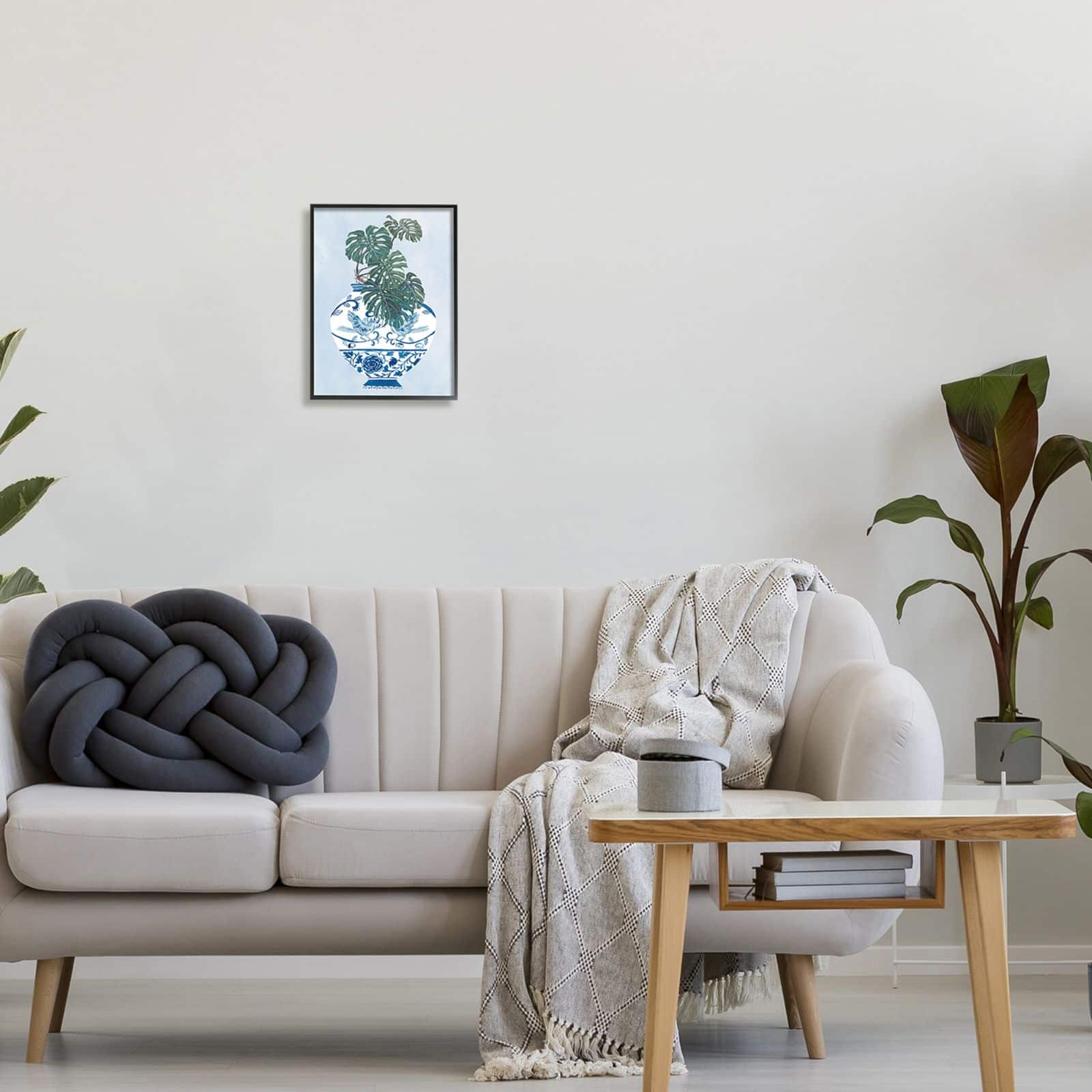 Stupell Industries Monstera Palm Plant Ornate Blue Bird Vase Scene Framed Wall Art
