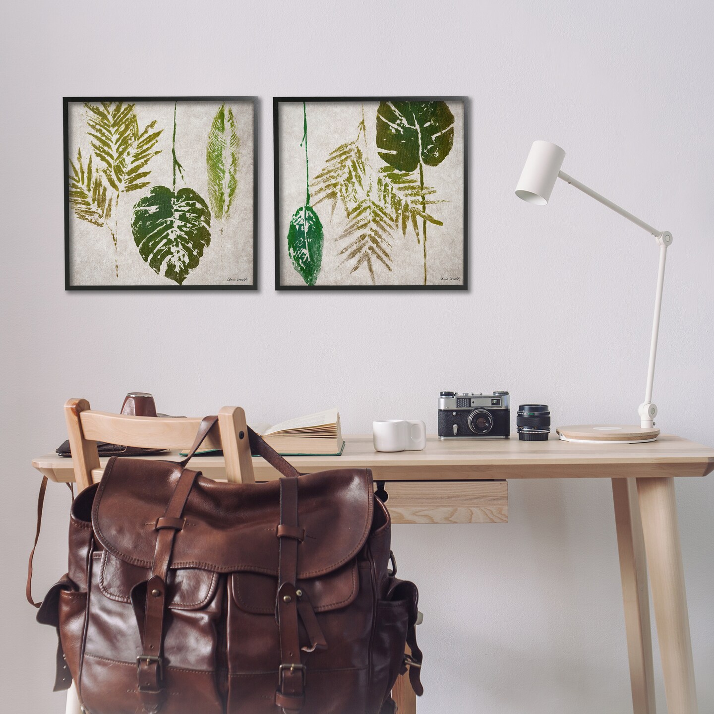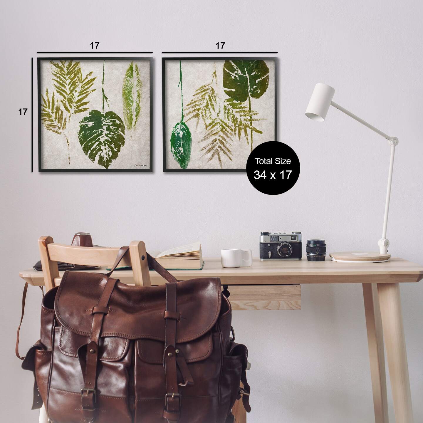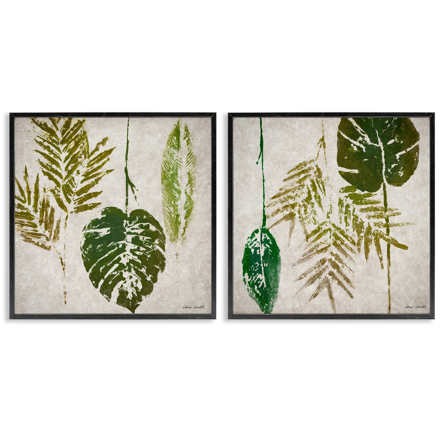 Stupell Industries Monstera Stamped Palm Leaves 2 pc Framed Giclee Wall Art Set Design by Lanie Loreth